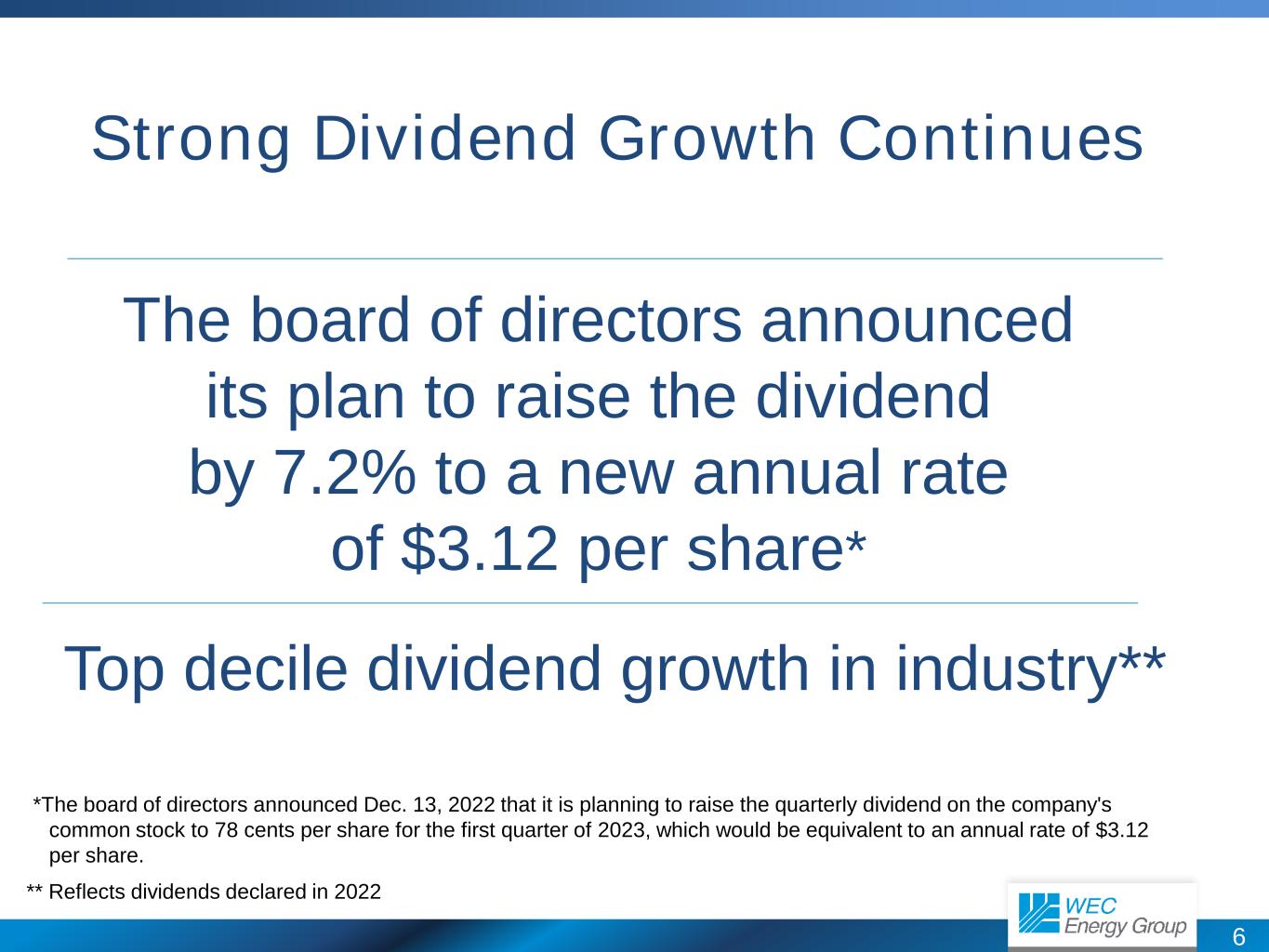 5 Consistent Performance Over Time EPS Guidance 2021 Exceeded  2020 Exceeded  2019 Exceeded  2018 Exceeded  2017 Exceeded  2016 Exceeded  2015 Exceeded  2014 Exceeded  2013 Exceeded  2012 Exceeded  2011 Exceeded  2010 Exceeded  2009 Exceeded  2008 Exceeded  2007 Exceeded  2006 Exceeded  2005 Exceeded  2004 Exceeded  The only utility to beat guidance every year for 18 years running.