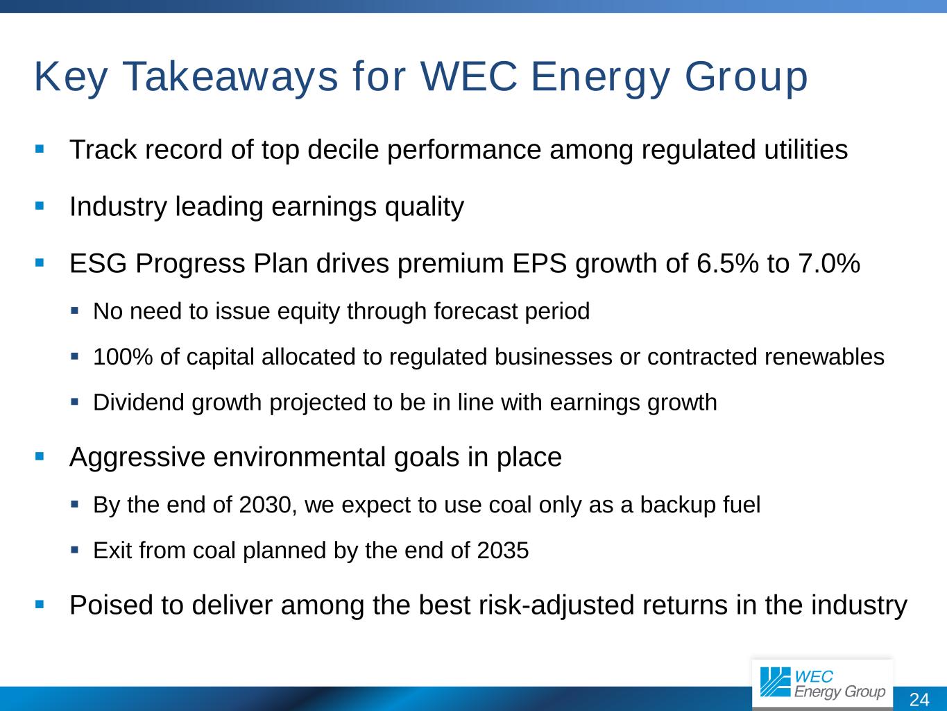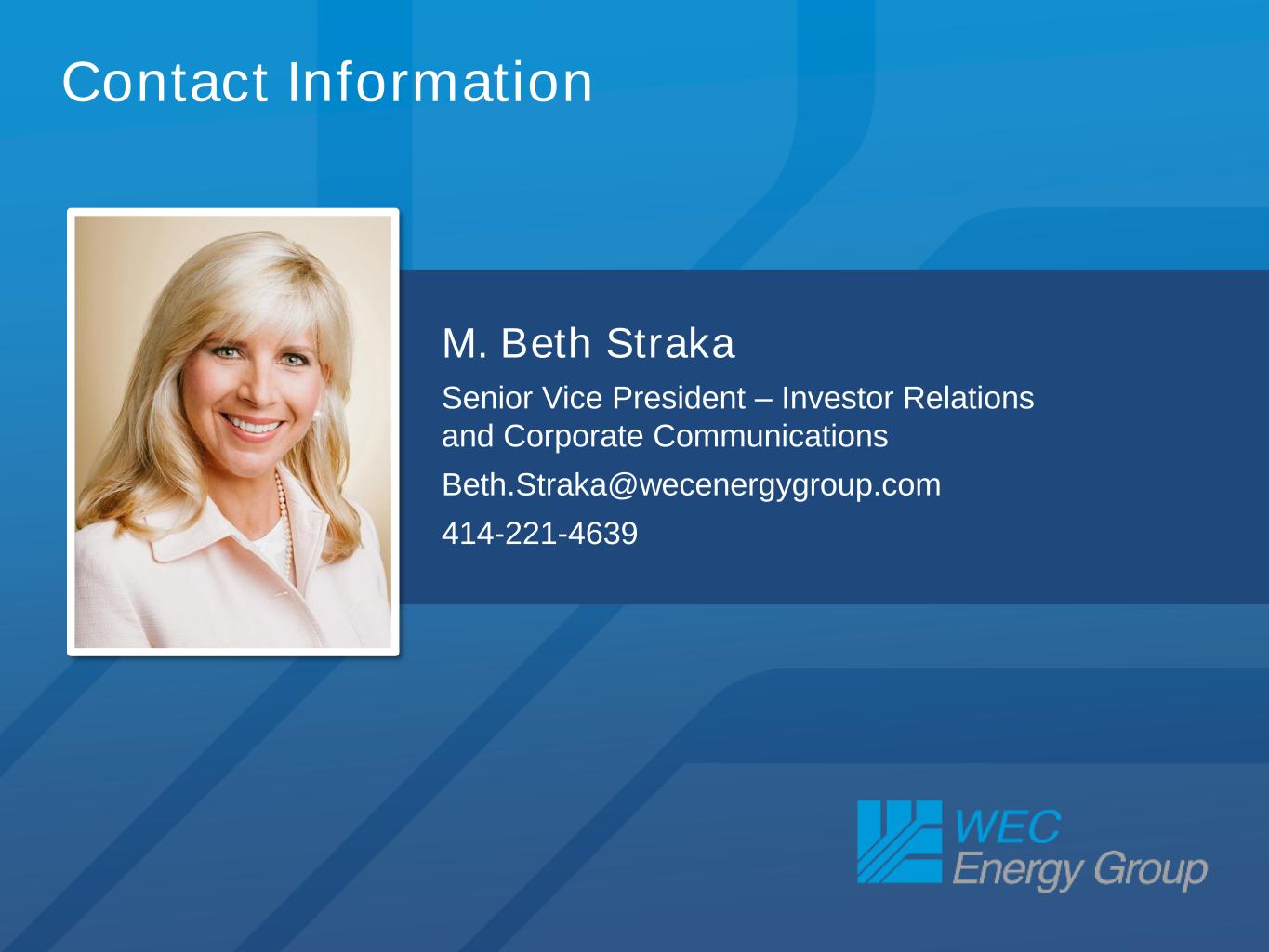 Contact Information M. Beth Straka Senior Vice President – Investor Relations and Corporate Communications Beth.Straka@wecenergygroup.com 414-221-4639