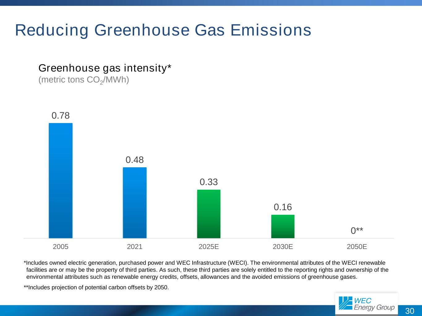 30 Reducing Greenhouse Gas Emissions 0.78 0.48 0.33 0.16 0** 2005 2021 2025E 2030E 2050E Greenhouse gas intensity* (metric tons CO2/MWh) *Includes owned electric generation, purchased power and WEC Infrastructure (WECI). The environmental attributes of the WECI renewable facilities are or may be the property of third parties. As such, these third parties are solely entitled to the reporting rights and ownership of the environmental attributes such as renewable energy credits, offsets, allowances and the avoided emissions of greenhouse gases. **Includes projection of potential carbon offsets by 2050.