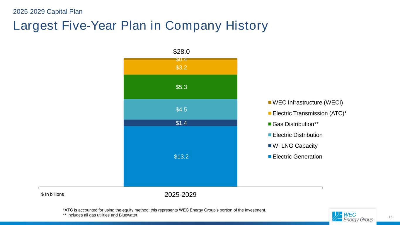 2 Cautionary Statement Regarding Forward-Looking Information Much of the information contained in this presentation is forward-looking information based upon management’s current expectations and projections that involve risks and uncertainties. Forward-looking information includes, among other things, information concerning earnings per share, rate case activity, earnings per share growth, cash flow, sources of revenue, dividend growth and dividend payout ratios, sales volumes, capital plans, credit ratings, credit metrics, debt-financings, construction costs, investment opportunities, corporate initiatives (including the ESG Progress Plan), rate base, and environmental matters (including emission reductions). Readers are cautioned not to place undue reliance on this forward-looking information. Forward-looking information is not a guarantee of future performance and actual results may differ materially from those set forth in the forward-looking information. Factors that could cause actual results to differ materially from those contemplated in any forward-looking statements include, but are not limited to: general economic conditions, including business and competitive conditions in the company’s service territories; timing, resolution and impact of rate cases and other regulatory decisions, including rider reconciliations; the company’s ability to continue to successfully integrate the operations of its subsidiaries; availability of the company’s generating facilities and/or distribution systems; unanticipated changes in fuel and purchased power costs; key personnel changes; unusual, varying or severe weather conditions; continued industry restructuring and consolidation; continued advances in, and adoption of, new technologies that produce power or reduce power consumption; energy and environmental conservation efforts; electrification initiatives, mandates and other efforts to reduce the use of natural gas; the company’s ability to successfully acquire and/or dispose of assets and projects and to execute on its capital plan; terrorist, physical or cyber-security threats or attacks and data security breaches; construction risks; labor disruptions; equity and bond market fluctuations; changes in the company’s and its subsidiaries’ ability to access the capital markets; changes in tax legislation or our ability to use certain tax benefits and carryforwards; changes in and uncertainty around federal, state, and local legislation and regulation, including changes resulting from the current U.S. presidential administration, in rate-setting policies or procedures and environmental standards, in the enforcement of these laws and regulations and in the interpretation of regulations or permit conditions by regulatory agencies; supply chain disruptions; inflation; political or geopolitical developments, including impacts on the global economy, supply chain and fuel prices, generally, including as a result of changes to U.S. and foreign government trade policies, or from ongoing, escalating, or expanding regional or international conflicts; the impact from any health crises, including epidemics and pandemics; current and future litigation and regulatory investigations, proceedings or inquiries; the ability of the Company to successfully and/or timely adopt new technologies, including artificial intelligence; changes in accounting standards; the financial performance of the American Transmission Company as well as projects in which the company’s energy infrastructure business invests; the ability of the company to obtain additional generating capacity at competitive prices; goodwill and its possible impairment; and other factors described under the heading “Factors Affecting Results, Liquidity and Capital Resources” in Management’s Discussion and Analysis of Financial Condition and Results of Operations and under the headings “Cautionary Statement Regarding Forward-Looking Information” and “Risk Factors” contained in WEC Energy Group’s Form 10-K for the year ended December 31, 2024, and in subsequent reports filed with the Securities and Exchange Commission. Except as may be required by law, WEC Energy Group expressly disclaims any obligation to publicly update or revise any forward-looking information.