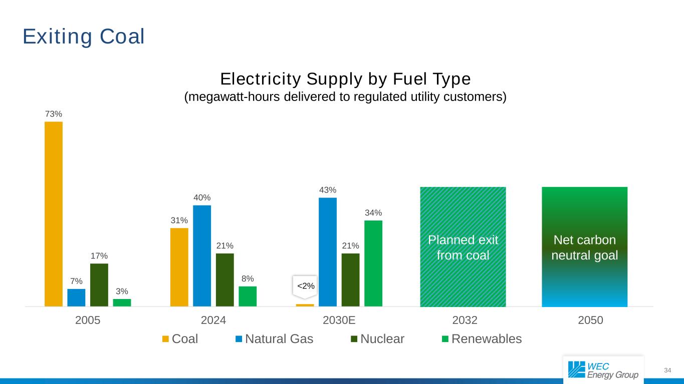 34 73% 31% 7% 40% 43% 17% 21% 21% 3% 8% 34% 2005 2024 2030E 2032 2050 Coal Natural Gas Nuclear Renewables <2% Net carbon neutral goal Planned exit from coal Exiting Coal Electricity Supply by Fuel Type (megawatt-hours delivered to regulated utility customers)