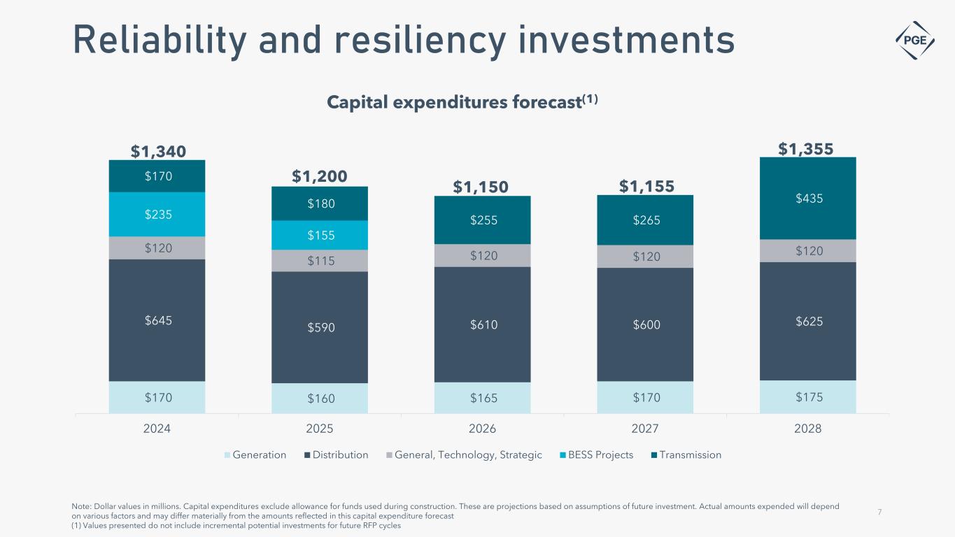 Note: Dollar values in millions. Capital expenditures exclude allowance for funds used during construction. These are projections based on assumptions of future investment. Actual amounts expended will depend on various factors and may differ materially from the amounts reflected in this capital expenditure forecast (1) Values presented do not include incremental potential investments for future RFP cycles Reliability and resiliency investments Capital expenditures forecast(1) $170 $160 $165 $170 $175 $645 $590 $610 $600 $625 $120 $115 $120 $120 $120 $235 $155 $170 $180 $255 $265 $435 2024 2025 2026 2027 2028 Generation Distribution General, Technology, Strategic BESS Projects Transmission $1,155$1,150 $1,355 $1,340 $1,200 7