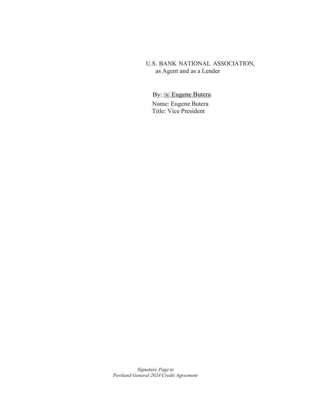 Signature Page to Portland General 2024 Credit Agreement U.S. BANK NATIONAL ASSOCIATION, as Agent and as a Lender By: /s/ Eugene Butera Name: Eugene Butera Title: Vice President
