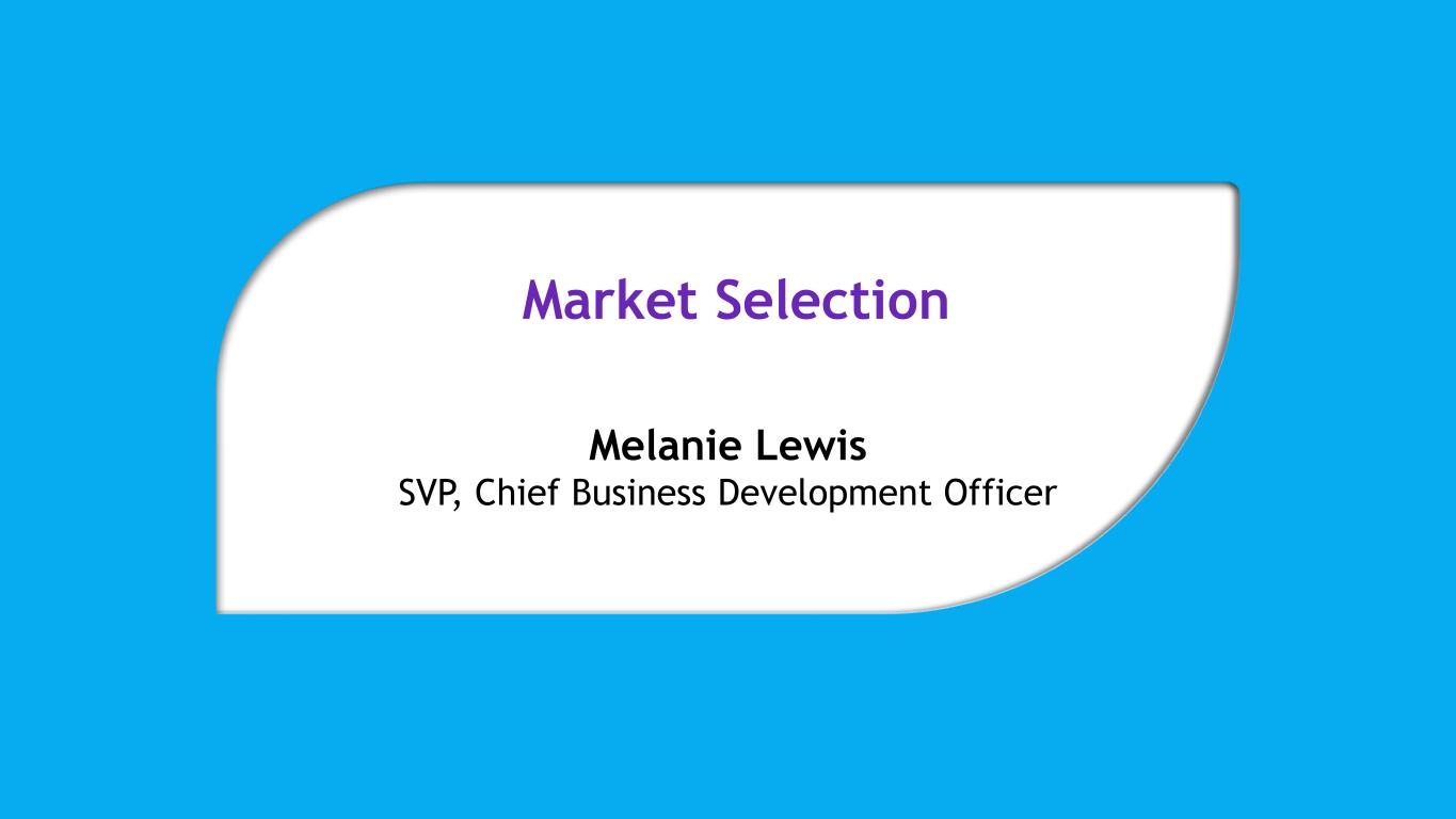 Market Selection Melanie Lewis SVP, Chief Business Development Officer