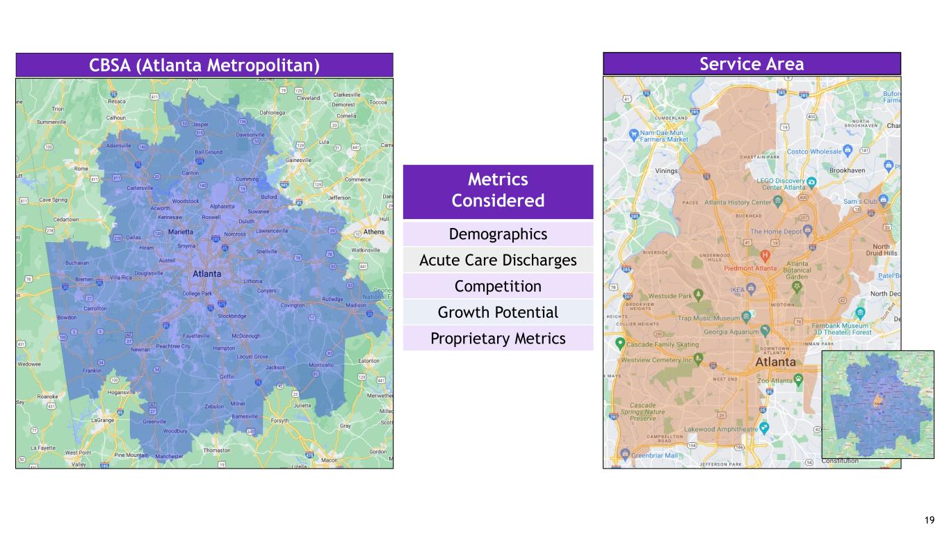 CBSA (Atlanta Metropolitan) Service Area Metrics Considered Demographics Acute Care Discharges Competition Growth Potential Proprietary Metrics 19