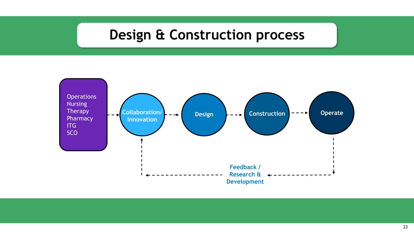 Design & Construction Process 23 Operations Nursing Therapy Pharmacy ITG SCO Collaboration/ Innovation Design Construction Operate Feedback / Research & Development Design & Construction process 23