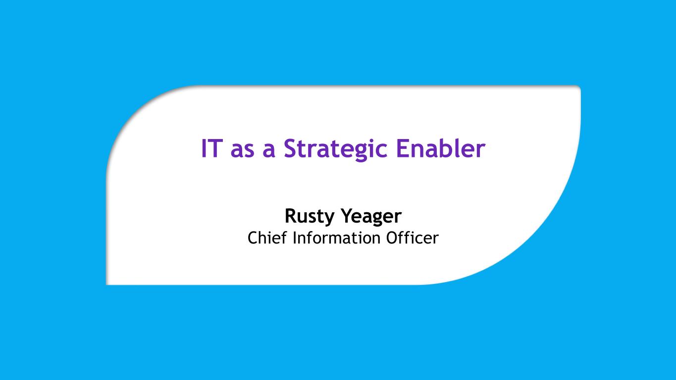 IT as a Strategic Enabler Rusty Yeager Chief Information Officer