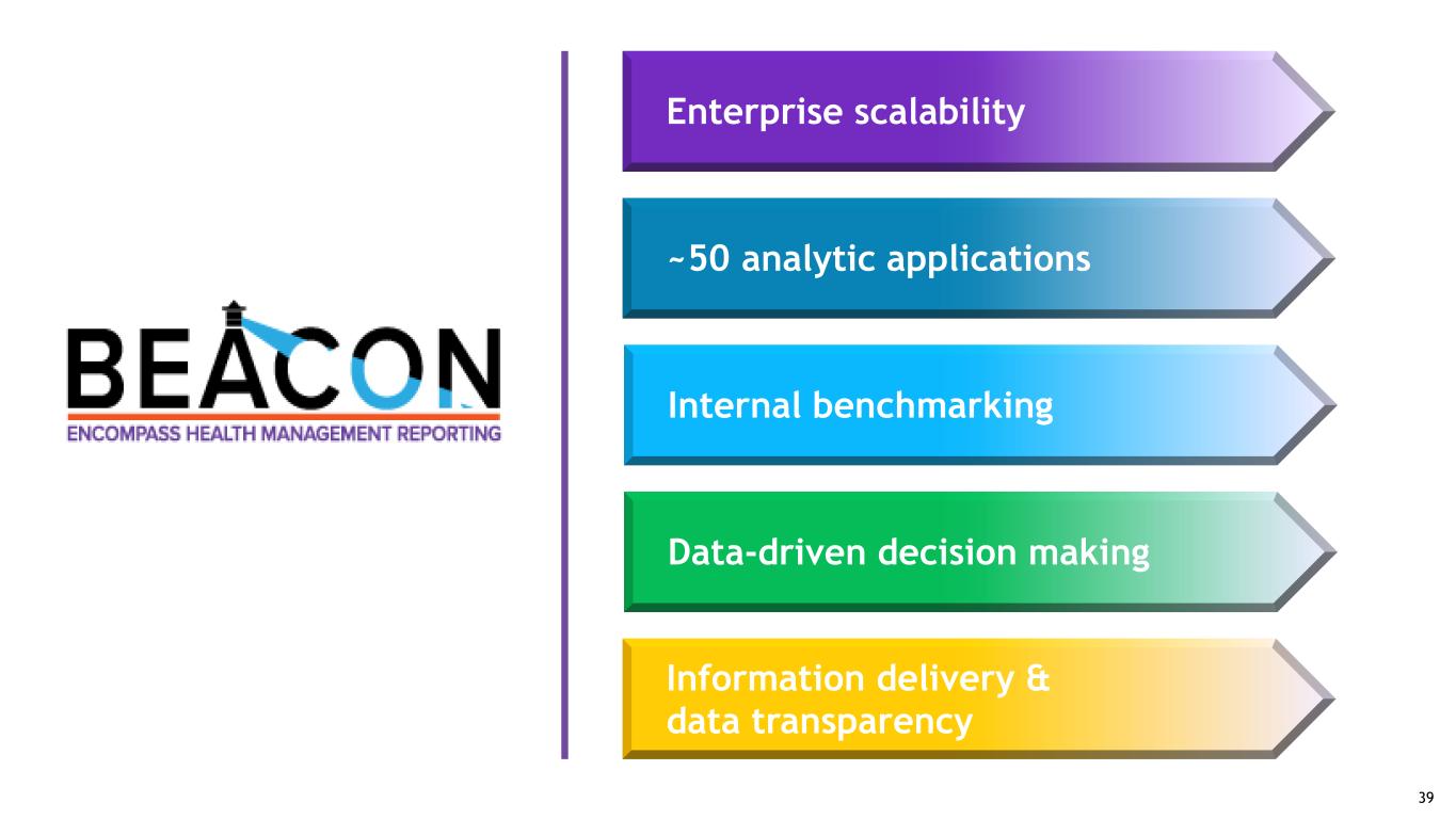 Enterprise scalability Information delivery & data transparency Internal benchmarking ~50 analytic applications Data-driven decision making 39