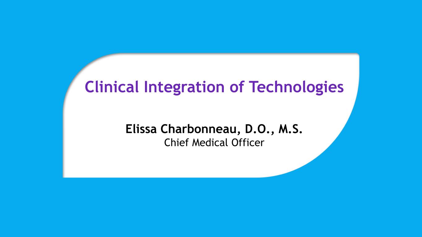 Clinical Integration of Technologies Elissa Charbonneau, D.O., M.S. Chief Medical Officer