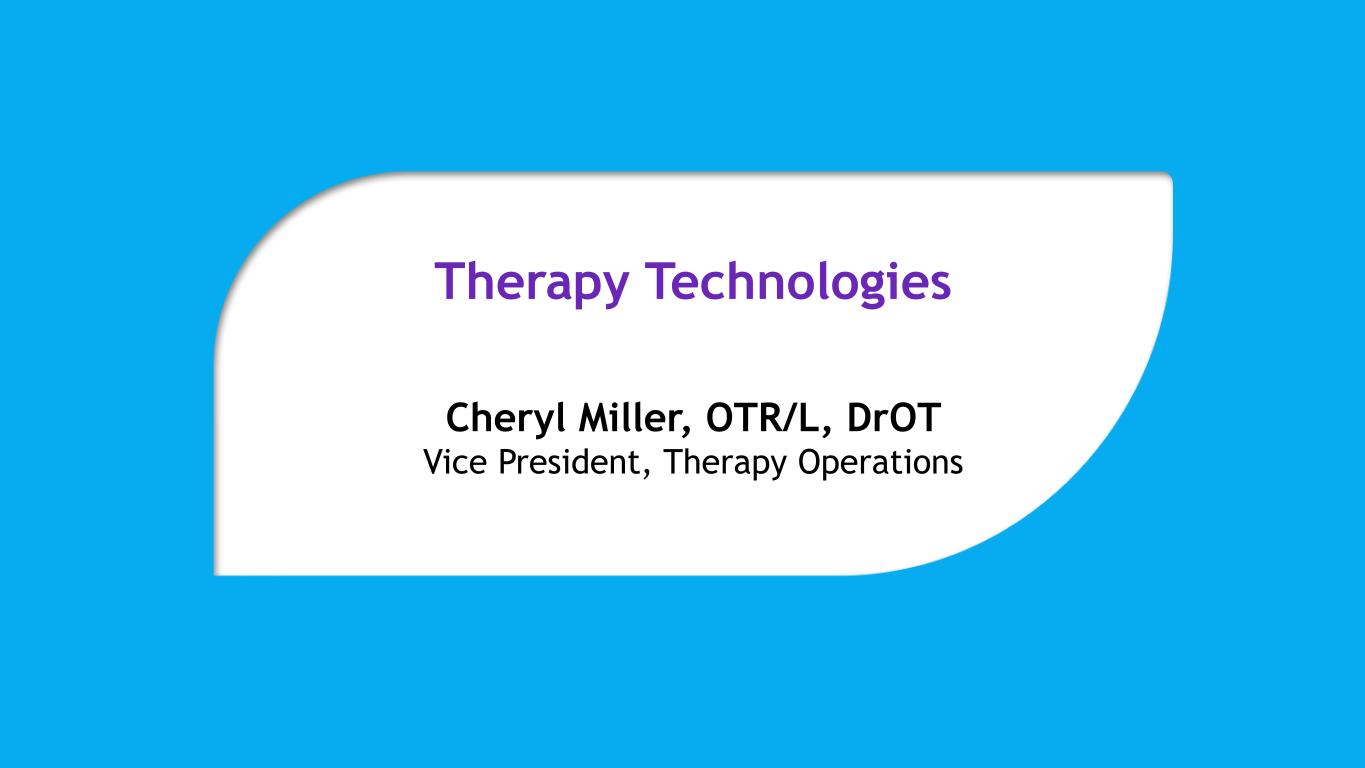 Therapy Technologies Cheryl Miller, OTR/L, DrOT Vice President, Therapy Operations