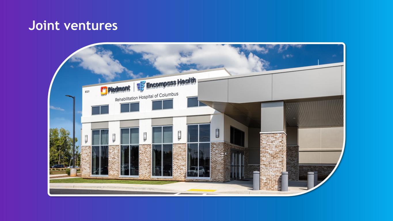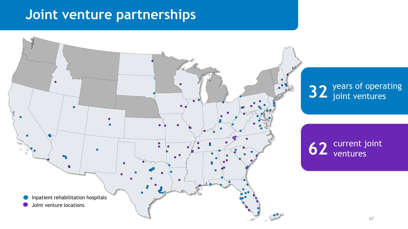Joint venture partnerships 32 62 years of operating joint ventures current joint ventures 67 Inpatient rehabilitation hospitals Joint venture locations