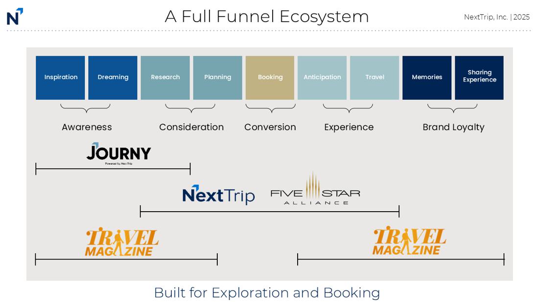 Travel Magazine 2.0 is strategically positioned to complement JOURNY, NextTrip’s top-of-funnel streaming content platform, serving as a powerful mid-funnel bridge. Designed to educate, inspire, and empower travelers with high-quality, research-ready content, the magazine connects JOURNY’s emotive storytelling to NextTrip’s proprietary booking engine and its travel brands, including Five Star Alliance. As the platform evolves, it will deepen engagement through interactive features and personalized experiences, creating a full-circle vacation companion that supports travelers before, during, and after their journeys, becoming more useful and tailored with every interaction.