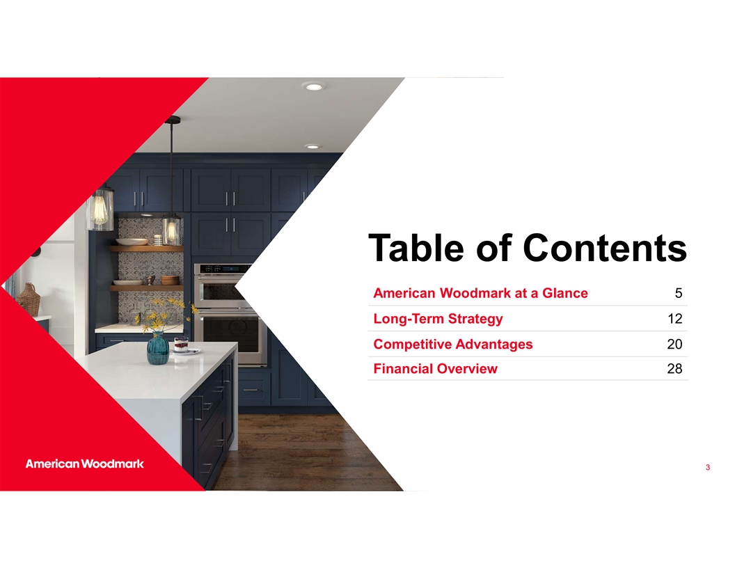 Table of Contents American Woodmark at a Glance 5 Long-Term Strategy 12 Competitive Advantages 20 Financial Overview 28 3