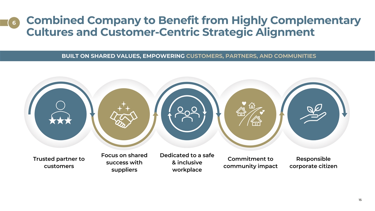 Combined Company to Benefit from Highly Complementary 6 Cultures and Customer-Centric Strategic Alignment BUILT ON SHARED VALUES, EMPOWERING CUSTOMERS, PARTNERS, AND COMMUNITIES Focus on shared Dedicated to a safe Trusted partner to Commitment to Responsible success with & inclusive customers community impact corporate citizen suppliers workplace 15