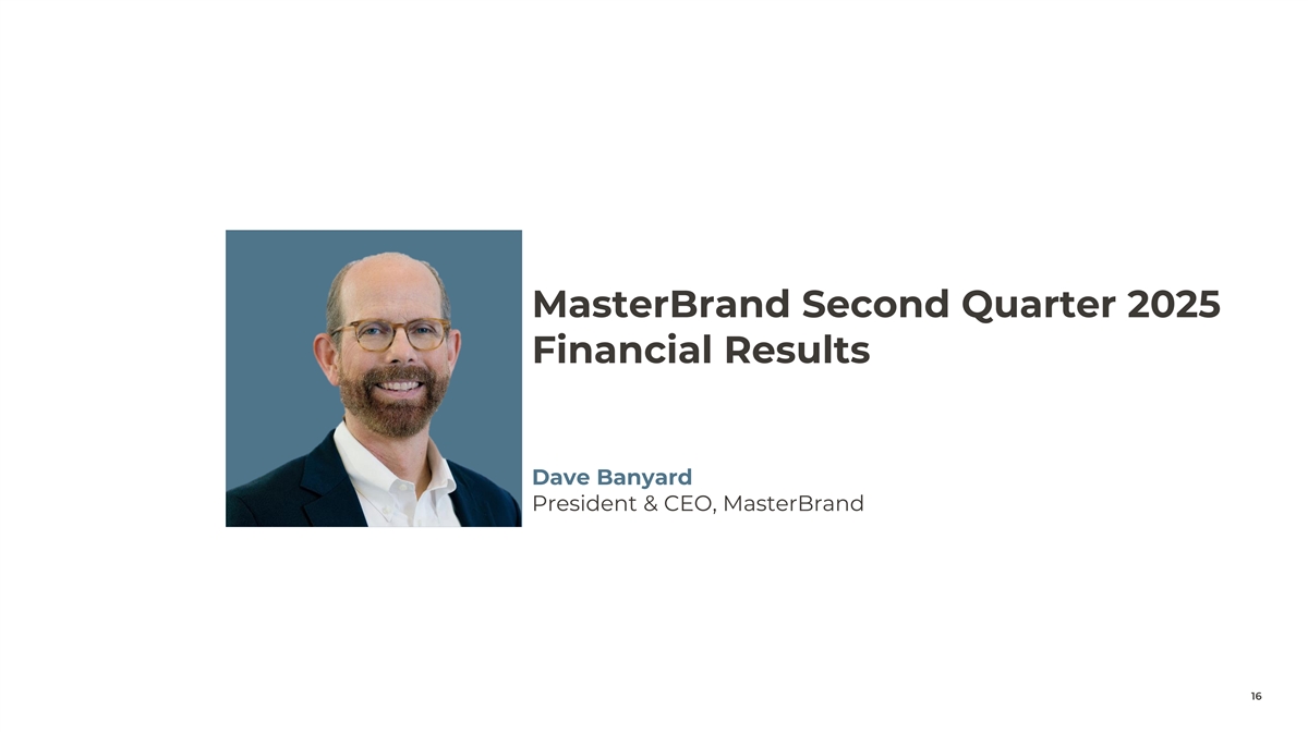 MasterBrand Second Quarter 2025 Financial Results Dave Banyard President & CEO, MasterBrand 16