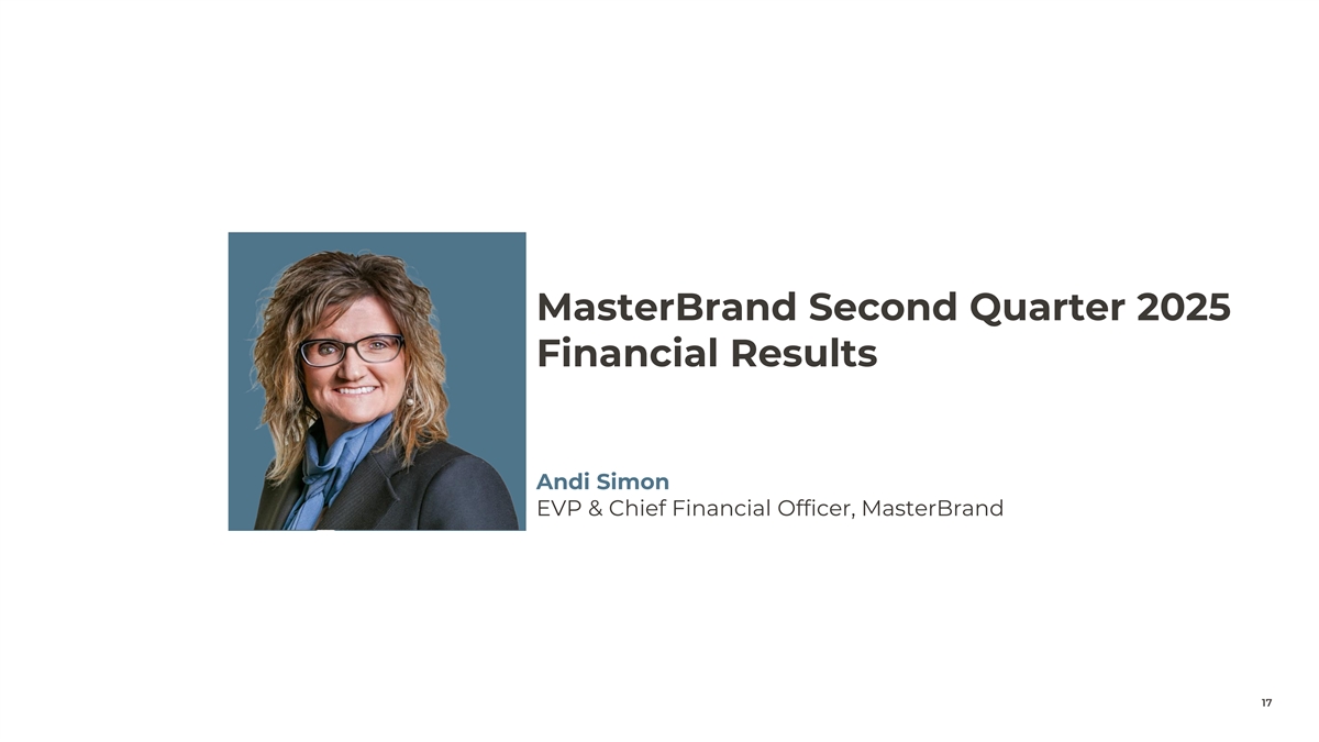 MasterBrand Second Quarter 2025 Financial Results Andi Simon EVP & Chief Financial Officer, MasterBrand 17