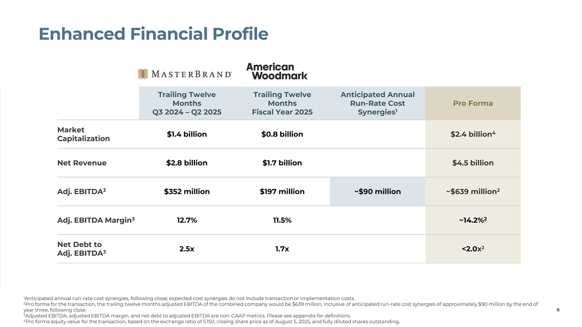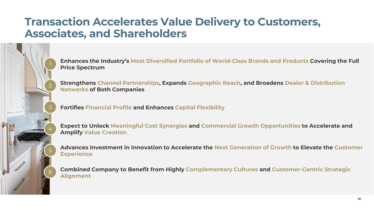 Transaction Accelerates Value Delivery to Customers, Associates, and Shareholders Enhances the Industry’s Most Diversified Portfolio of World-Class Brands and Products Covering the Full 1 Price Spectrum Strengthens Channel Partnerships, Expands Geographic Reach, and Broadens Dealer & Distribution 2 Networks of Both Companies 3 Fortifies Financial Profile and Enhances Capital Flexibility Expect to Unlock Meaningful Cost Synergies and Commercial Growth Opportunities to Accelerate and 4 Amplify Value Creation Advances Investment in Innovation to Accelerate the Next Generation of Growth to Elevate the Customer 5 Experience Combined Company to Benefit from Highly Complementary Cultures and Customer-Centric Strategic 6 Alignment 5