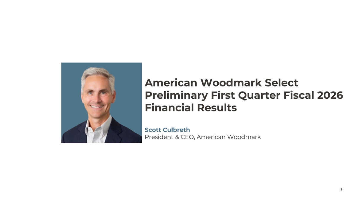American Woodmark Select Preliminary First Quarter Fiscal 2026 Financial Results Scott Culbreth President & CEO, American Woodmark 9