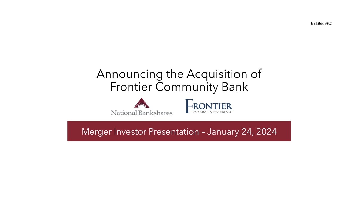 Exhibit 99.2 Announcing the Acquisition of Frontier Community Bank Merger Investor Presentation – January 24, 2024