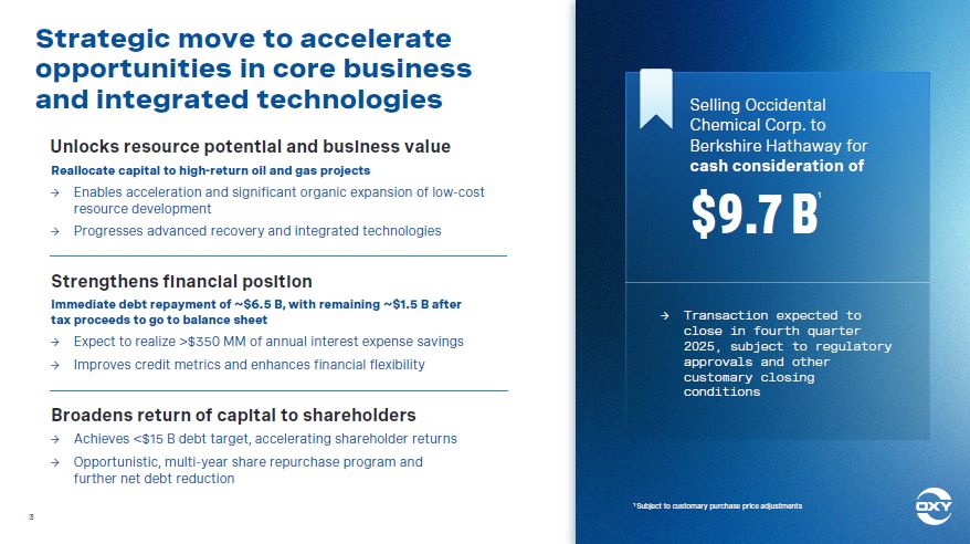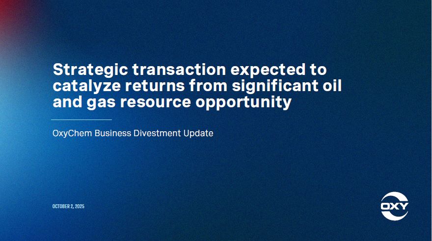 Strategic transaction expected to catalyze returns from significant oil and gas resource opportunity  OxyChem Business Divestment Update  OCTOBER 2, 2025