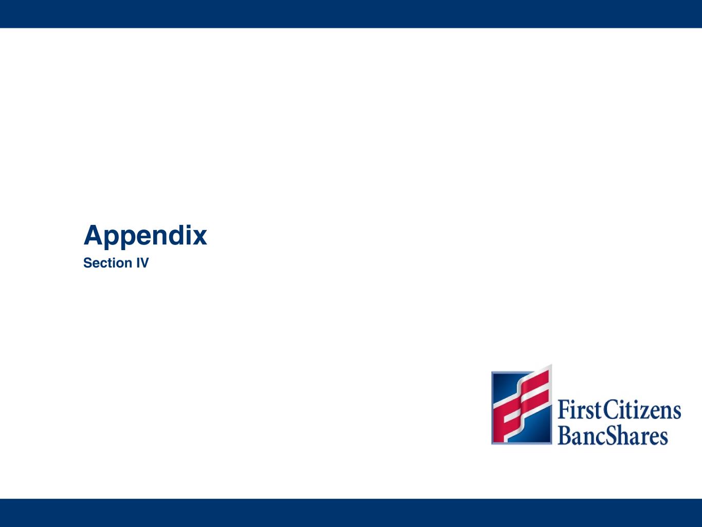 25 0.62% 0.35% 0.34% 0.65% 1.35% 0.32% 0.24% 0.26% 0.50% 1.12% 0.23% 0.17% 0.19% 0.35% 0.78% Cost of interest-bearing liabilities Cost of interest-bearing deposits Cost of deposits 4Q21 1Q22 2Q22 3Q22 4Q22 0.00% 0.20% 0.40% 0.60% 0.80% 1.00% 1.20% 1.40% Cost of funds Additional sources of liquidity Categories $ in millions FHLB $ 9,218 FRB 4,203 Line of credit 100 Total $ 13,521 QTD Change 4Q22 3Q22 2Q22 1Q22 4Q21 Linked Quarter Prior Year Quarter Total deposits $ 89,408 93.1 % $ 87,553 91.3 % $ 89,329 95.2 % $ 91,597 96.5 % $ 90,777 93.8 % $ 1,855 $ (1,369) Securities sold under customer repurchase agreements 436 0.5 578 0.6 646 0.7 616 0.6 589 0.6 (142) (153) Federal Home Loan Bank borrowings 4,250 4.3 5,800 6.0 1,785 1.9 639 0.7 645 0.7 (1,550) 3,605 Senior unsecured borrowings 885 0.9 888 0.9 892 1.0 895 1.0 3,742 3.8 (3) (2,857) Subordinated debt 1,049 1.1 1,052 1.1 1,055 1.1 1,058 1.1 973 1.0 (3) 76 Other borrowings 25 0.1 25 0.1 81 0.1 84 0.1 86 0.1 0 (61) Total deposits and borrowed funds $ 96,053 100 % $ 95,896 100 % $ 93,788 100 % $ 94,889 100 % $ 96,812 100 % $ 157 $ (759) Note – The financial data and ratios provided on this slide are presented as if BancShares and CIT were combined for the 2021 historical period. The Combined measures are Non-GAAP. Refer to Section V of this presentation for a reconciliation of the Combined (Non-GAAP) to BancShares (GAAP) measures. For the BancShares 2021 reported data, refer to pages 33-35 of the Appendix. Totals may not foot due to rounding. Funding Mix ($ in millions)