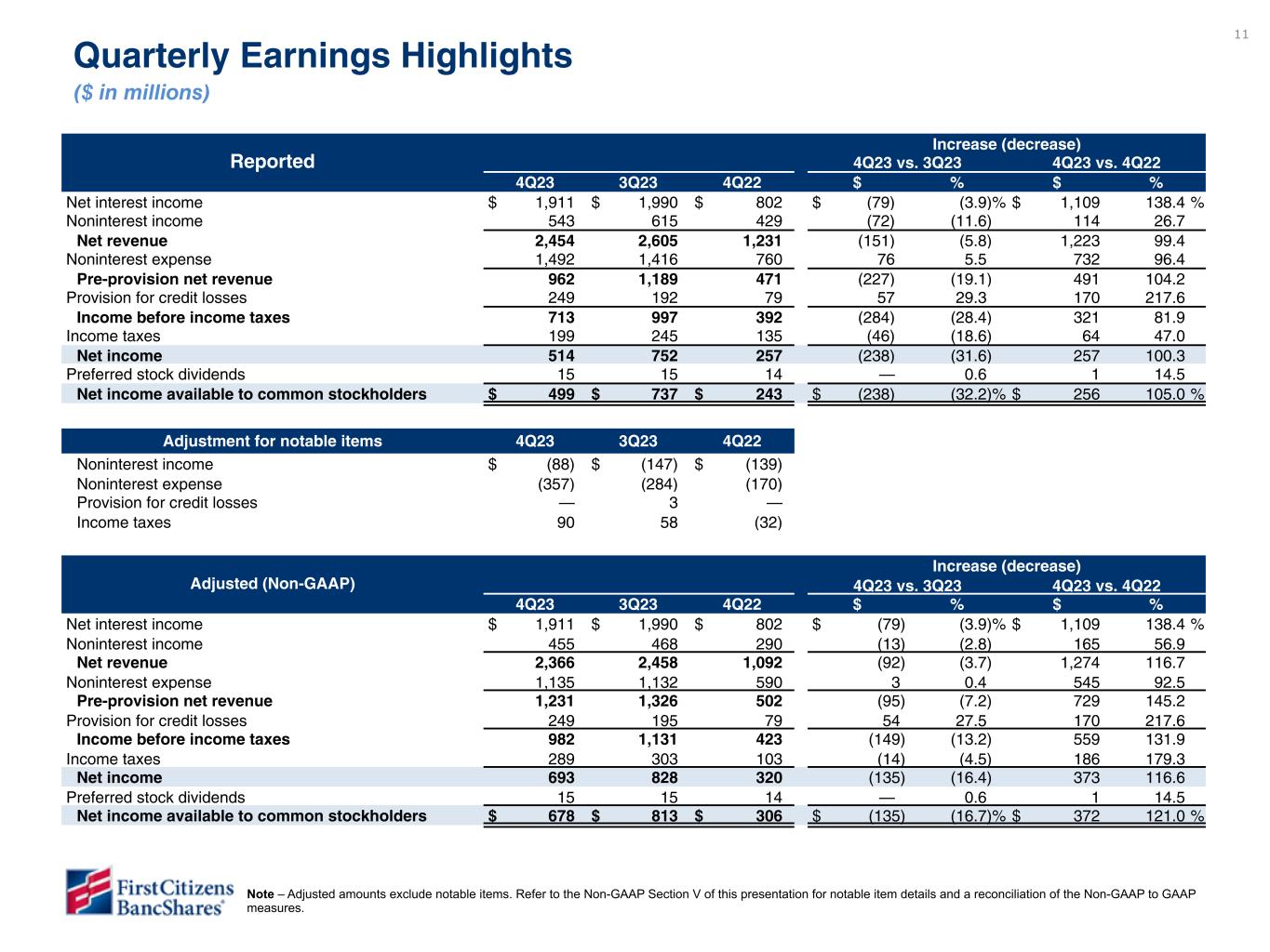 First Citizens BancShares, Inc. Fourth Quarter 2023 Earnings Conference Call January 26, 2024