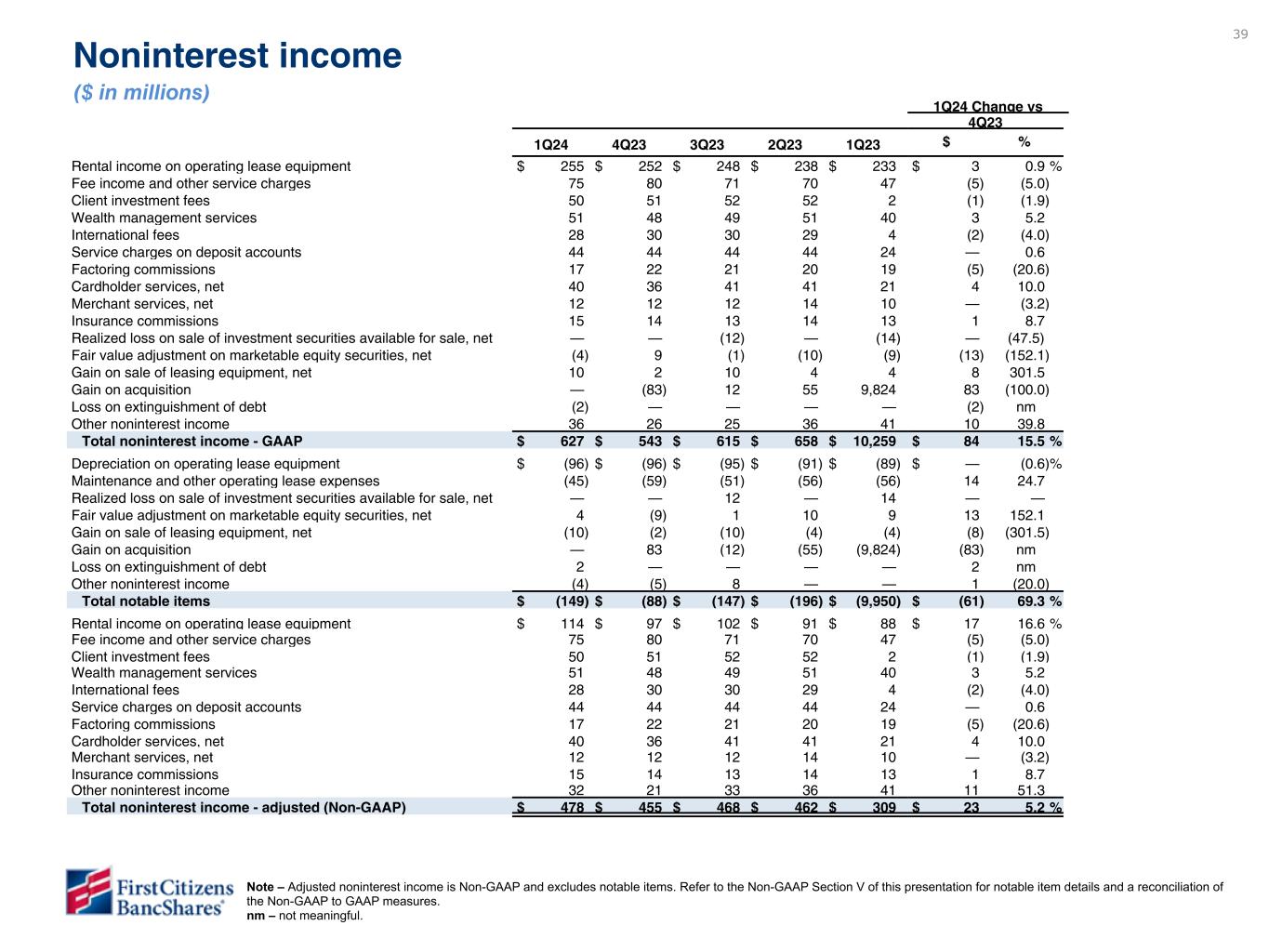 First Citizens BancShares, Inc. First Quarter 2024 Earnings Conference Call April 25, 2024