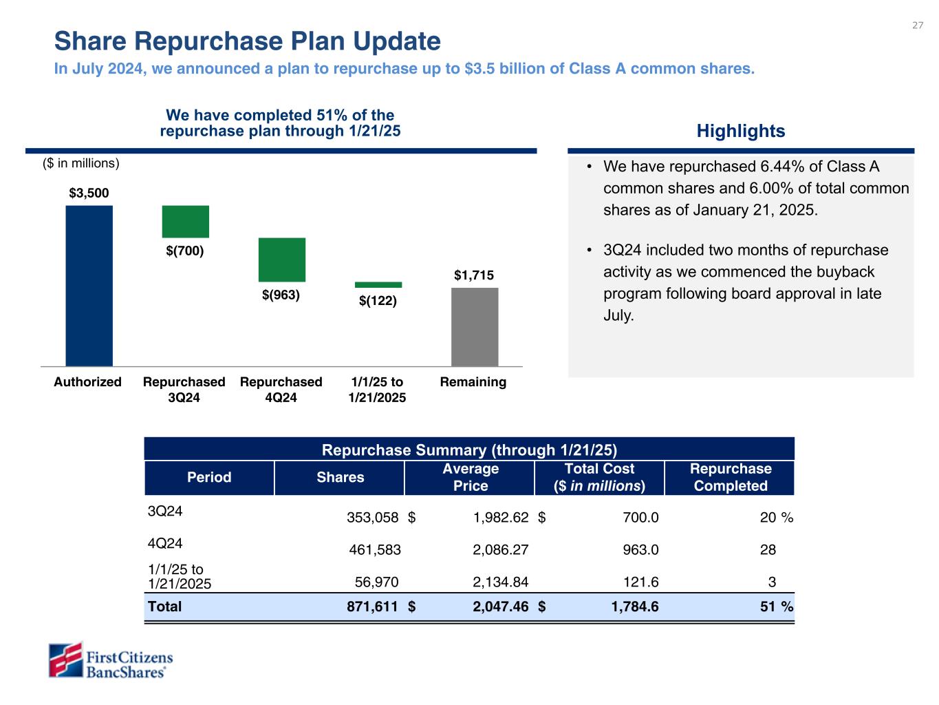 First Citizens BancShares, Inc. Fourth Quarter 2024 Earnings Conference Call January 24, 2025