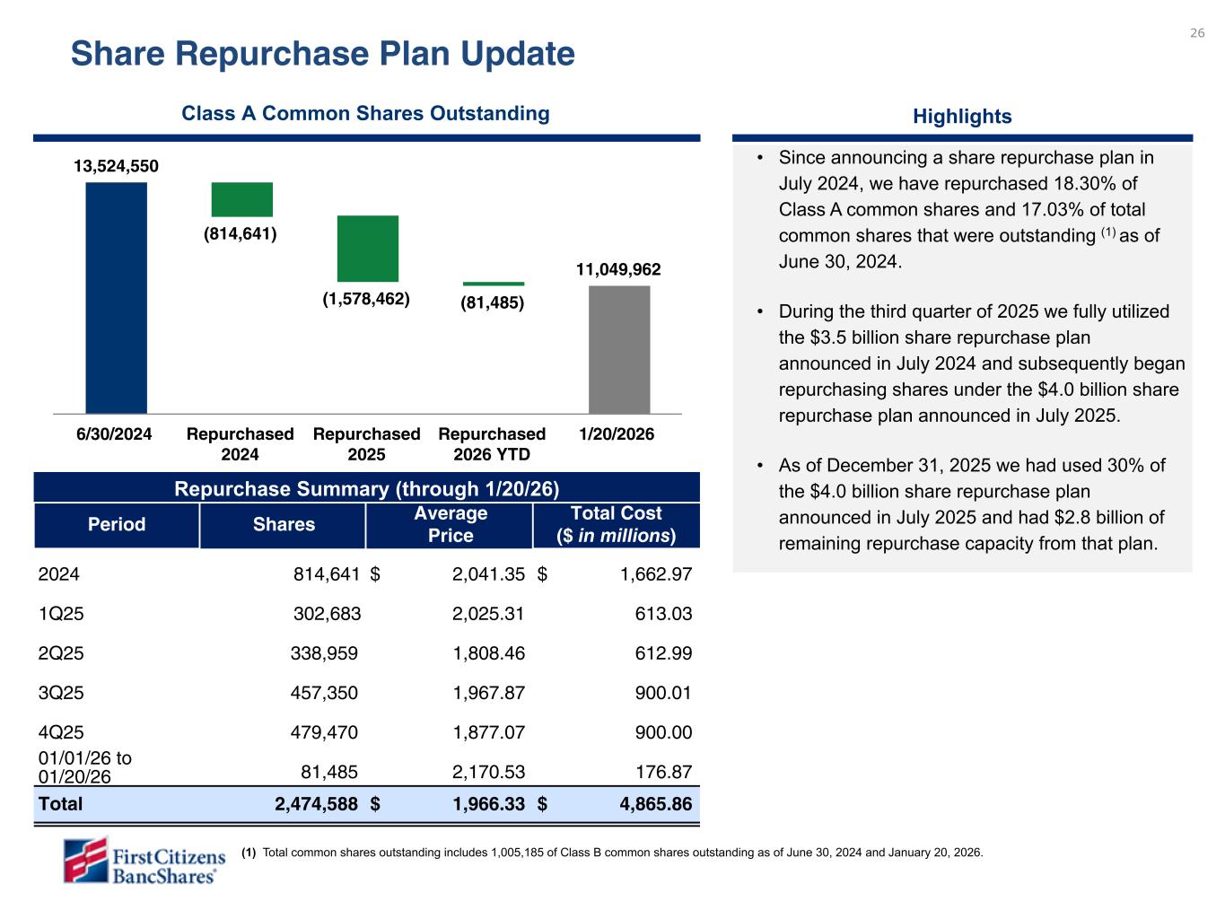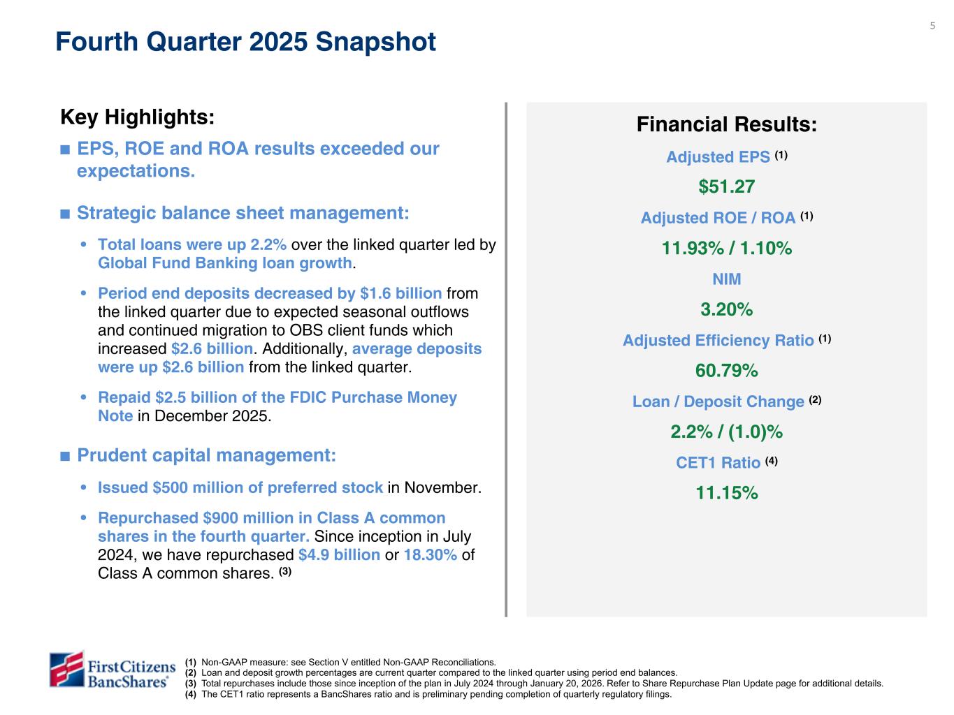 First Citizens BancShares, Inc. Fourth Quarter 2025 Earnings Conference Call January 23, 2026