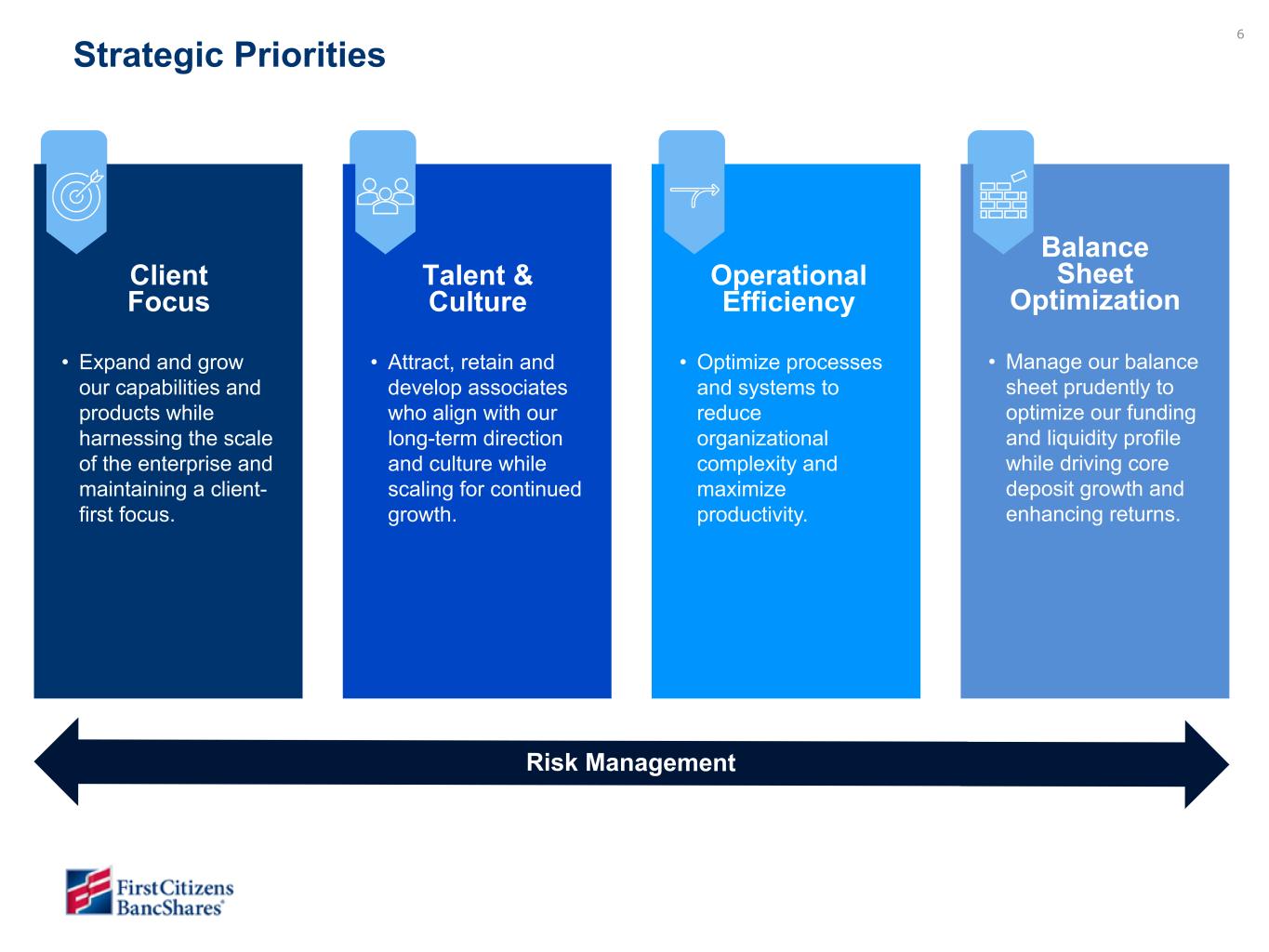 6 Strategic Priorities • Expand and grow our capabilities and products while harnessing the scale of the enterprise and maintaining a client- first focus. Client Focus • Attract, retain and develop associates who align with our long-term direction and culture while scaling for continued growth. Talent & Culture • Optimize processes and systems to reduce organizational complexity and maximize productivity. Operational Efficiency • Manage our balance sheet prudently to optimize our funding and liquidity profile while driving core deposit growth and enhancing returns. Balance Sheet Optimization Risk Management