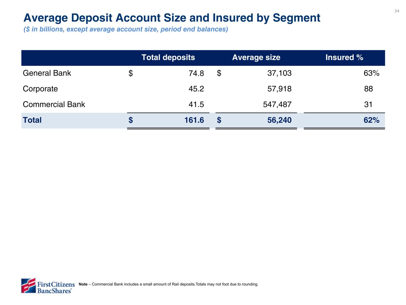 34 Average Deposit Account Size and Insured by Segment ($ in billions, except average account size, period end balances) Total deposits Average size Insured % General Bank $ 74.8 $ 37,103 63 % Corporate 45.2 57,918 88 Commercial Bank 41.5 547,487 31 Total $ 161.6 $ 56,240 62 % Note – Commercial Bank includes a small amount of Rail deposits.Totals may not foot due to rounding.