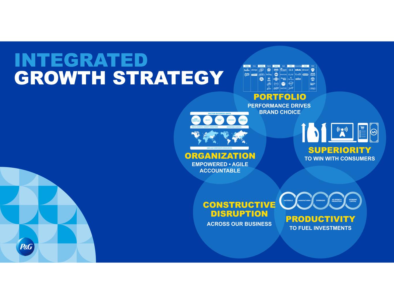 INTEGRATED GROWTH STRATEGY SUPERIORITY TO WIN WITH CONSUMERS PORTFOLIO PERFORMANCE DRIVES BRAND CHOICE ACROSS OUR BUSINESS CONSTRUCTIVE DISRUPTION PRODUCTIVITY TO FUEL INVESTMENTS ORGANIZATION EMPOWERED • AGILE ACCOUNTABLE