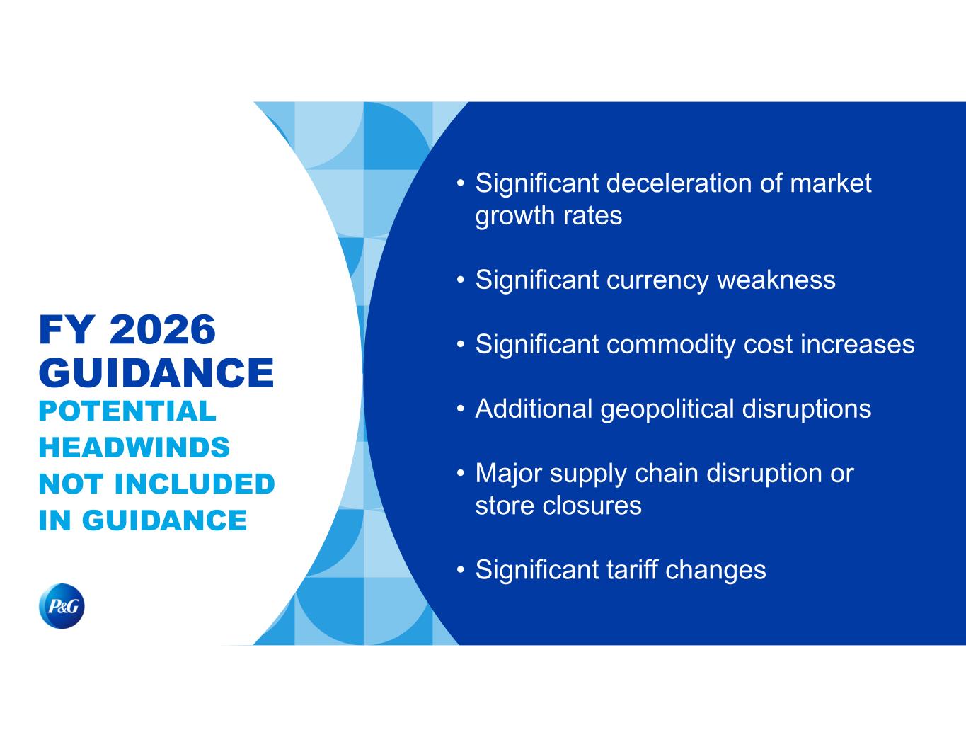 FY 2026 GUIDANCE POTENTIAL HEADWINDS NOT INCLUDED IN GUIDANCE • Significant deceleration of market growth rates • Significant currency weakness • Significant commodity cost increases • Additional geopolitical disruptions • Major supply chain disruption or store closures • Significant tariff changes
