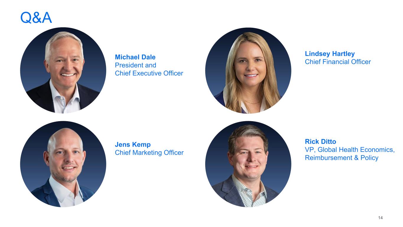 Michael Dale President and Chief Executive Officer Jens Kemp Chief Marketing Officer Rick Ditto VP, Global Health Economics, Reimbursement & Policy 14 Lindsey Hartley Chief Financial Officer Q&A