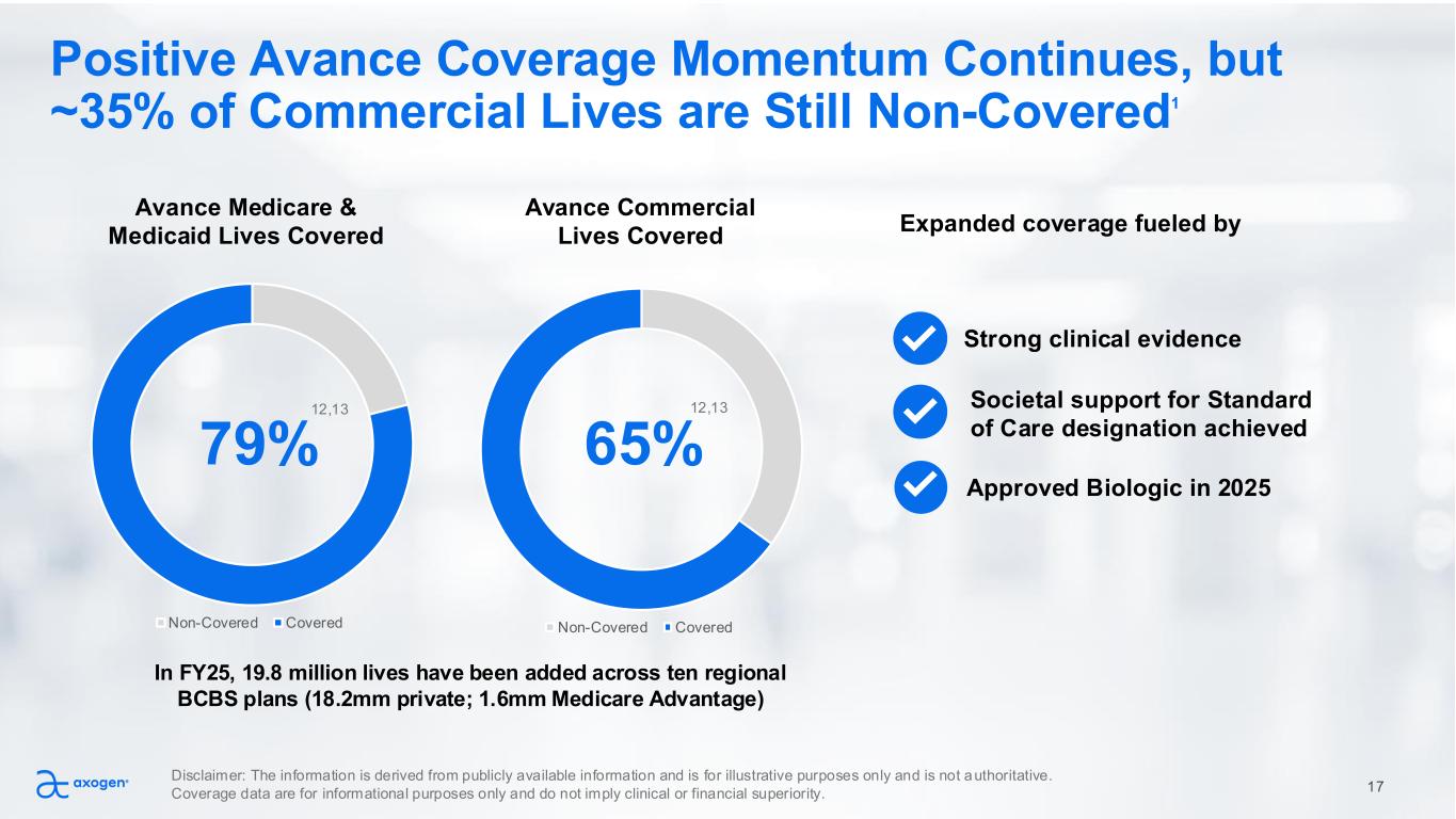 Non-Covered Covered Societal support for Standard of Care designation achieved Non-Covered Covered Positive Avance Coverage Momentum Continues, but ~35% of Commercial Lives are Still Non-Covered1 79% 65% Expanded coverage fueled by Approved Biologic in 2025 Strong clinical evidence Avance Medicare & Medicaid Lives Covered Avance Commercial Lives Covered In FY25, 19.8 million lives have been added across ten regional BCBS plans (18.2mm private; 1.6mm Medicare Advantage) 17 Disclaimer: The information is derived from publicly available information and is for illustrative purposes only and is not authoritative. Coverage data are for informational purposes only and do not imply clinical or financial superiority. 12,13 12,13