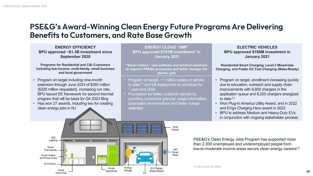 PSEG Investor Update October 2023 Gas Distribution Investment Is Focused on Infrastructure Replacement Accelerating Emission Reduction Benefits th Pending NJBPU review and potential approval on October 11 : • GSMP II extension proposed settlement, - ~$900 million, 2-year extension (January 2024 – December 2025) - ~$750 million accelerated clause-based recovery and $150 million stipulated base - Replacement of a minimum of 400 miles of main GSMP main replacement - Sustains the thousands of jobs and skilled workforce created under GSMP II • GSMP III filing, including RNG and Hydrogen projects: - Held in abeyance; parties to reconvene by no later than January 31, 2025 - If approved, would commence in January 2026 25