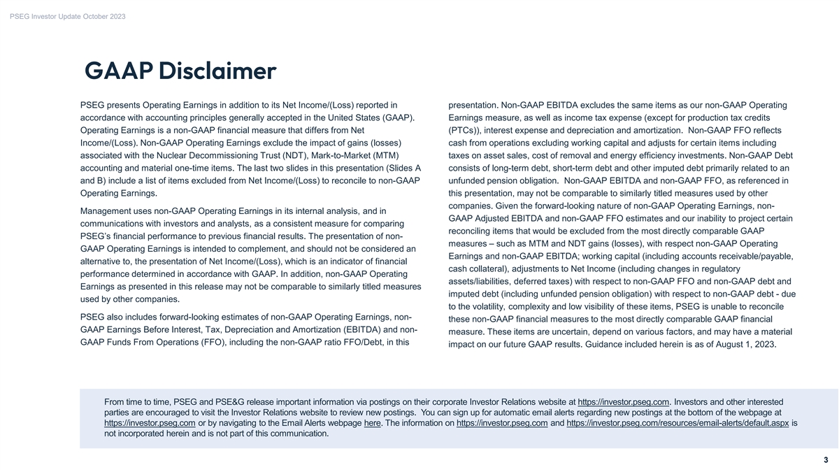 PSEG Investor Update October 2023 Public Service Electric & Gas