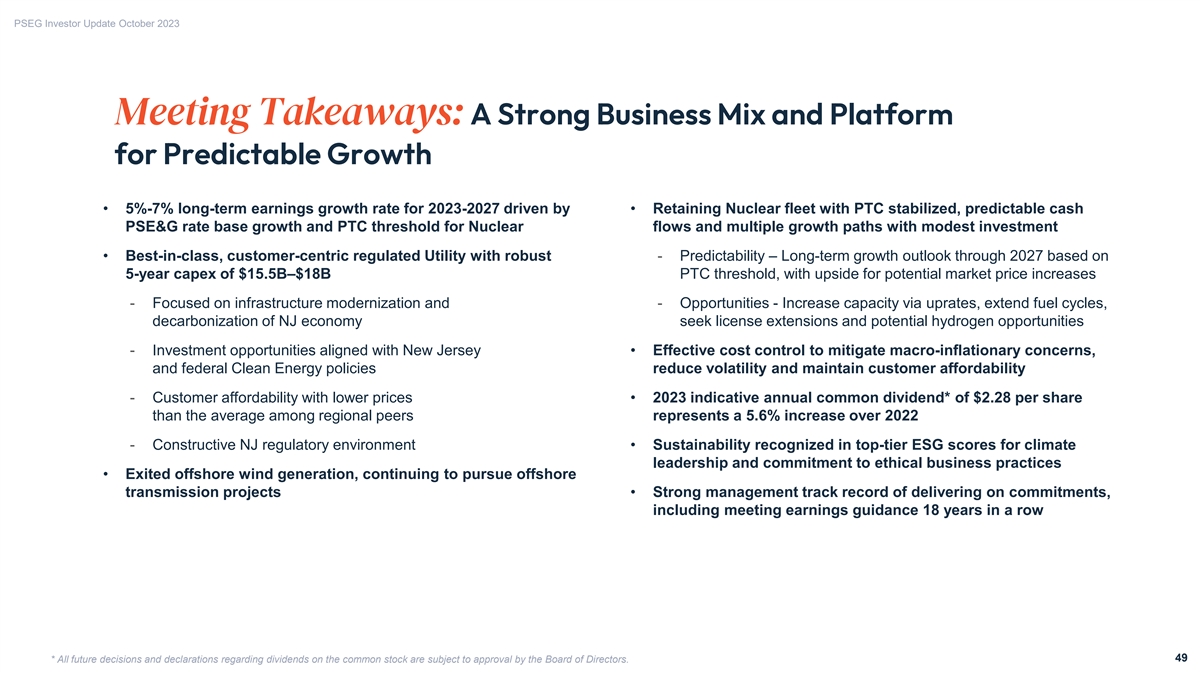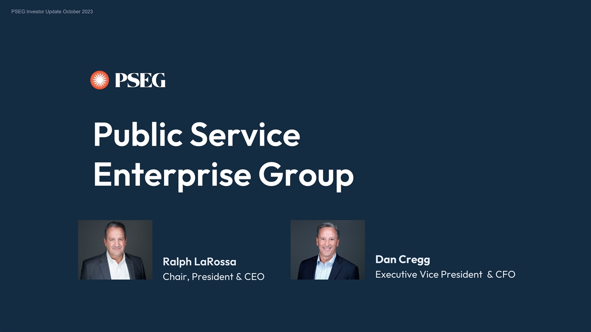 PSEG Investor Update October 2023 Public Service Enterprise Group Dan Cregg Ralph LaRossa Executive Vice President & CFO Chair, President & CEO