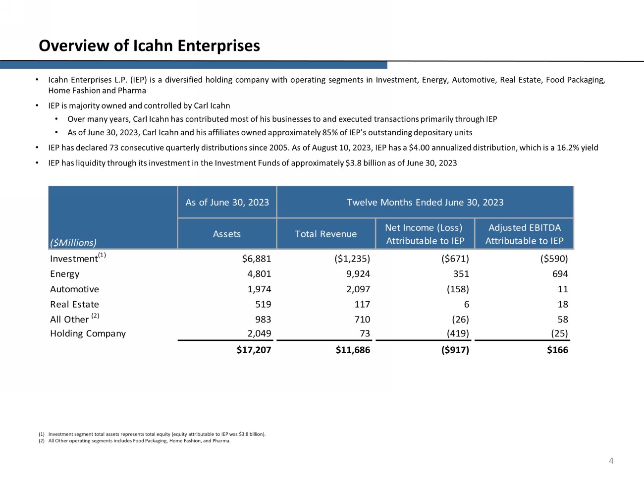 Icahn Enterprises L.P. Investor Presentation August 2023