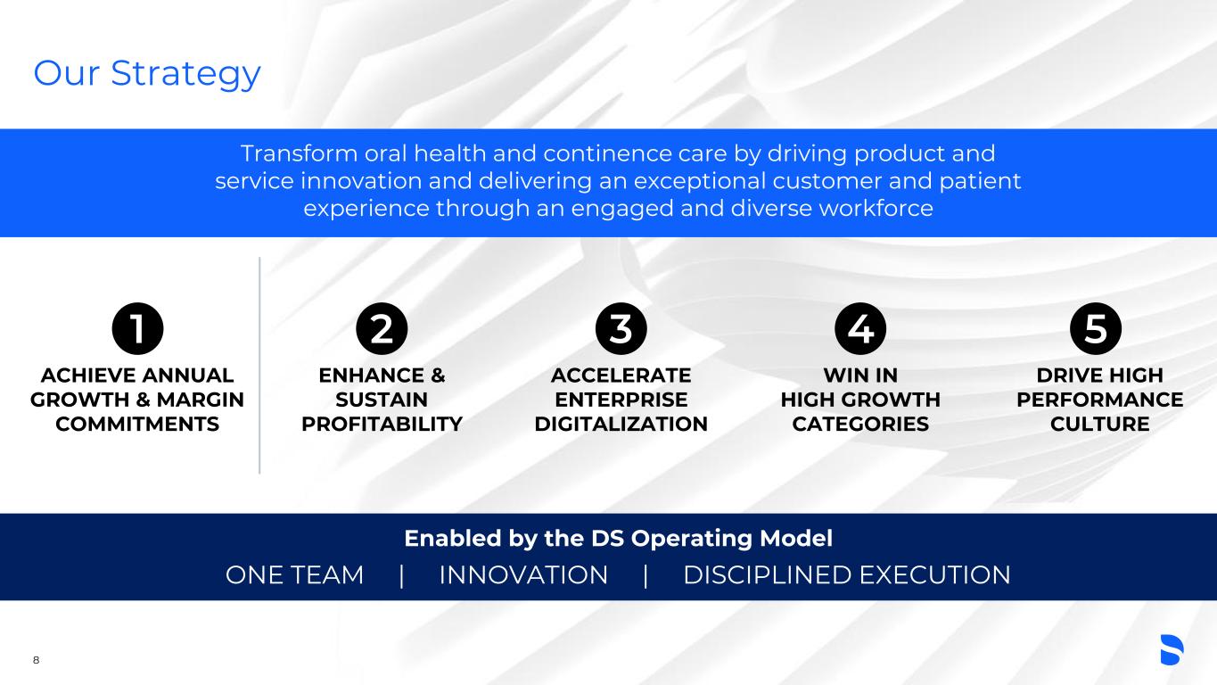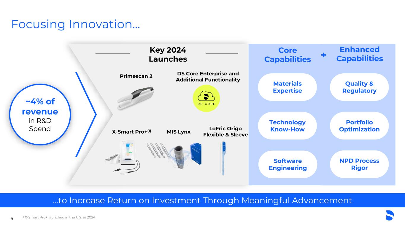 Our Strategy Transform oral health and continence care by driving product and service innovation and delivering an exceptional customer and patient experience through an engaged and diverse workforce Enabled by the DS Operating Model ONE TEAM | INNOVATION | DISCIPLINED EXECUTION 8 ACHIEVE ANNUAL GROWTH & MARGIN COMMITMENTS 1 ENHANCE & SUSTAIN PROFITABILITY 2 ACCELERATE ENTERPRISE DIGITALIZATION 3 WIN IN HIGH GROWTH CATEGORIES 4 DRIVE HIGH PERFORMANCE CULTURE 5