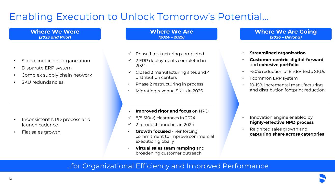 11 …to Drive Durable Demand and Commercial Excellence Commercial Initiatives and ReinvestmentsPhase 2 Organizational Realignment Transforming the Business… $80-100M Est. annual run-rate savings(1) Phase 1 of $200M annual run-rate savings completed, Phase 2 of $80-100M estimated annual run-rate savings to be complete by end of 2025 Virtual Sales Team Creating demand and expanding customer reach SureSmile Investments Improving software UX and enhancing demand generation E-Commerce Reimagining and redesigning the DS online ordering experience North America Driving disciplined salesforce execution