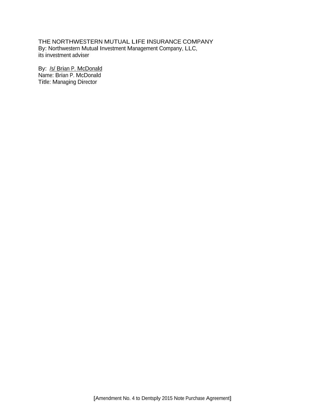 [Amendment No. 4 to Dentsply 2015 Note Purchase Agreement] THE NORTHWESTERN MUTUAL LIFE INSURANCE COMPANY By: Northwestern Mutual Investment Management Company, LLC, its investment adviser By: /s/ Brian P. McDonald Name: Brian P. McDonald Title: Managing Director