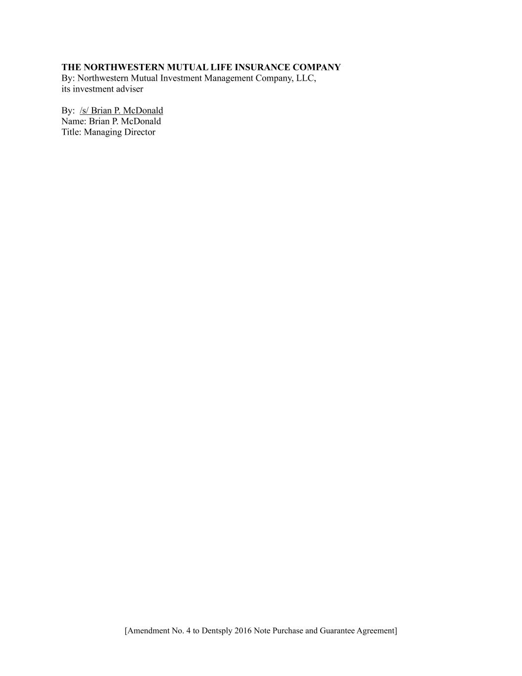 [Amendment No. 4 to Dentsply 2016 Note Purchase and Guarantee Agreement] THE NORTHWESTERN MUTUAL LIFE INSURANCE COMPANY By: Northwestern Mutual Investment Management Company, LLC, its investment adviser By: /s/ Brian P. McDonald Name: Brian P. McDonald Title: Managing Director