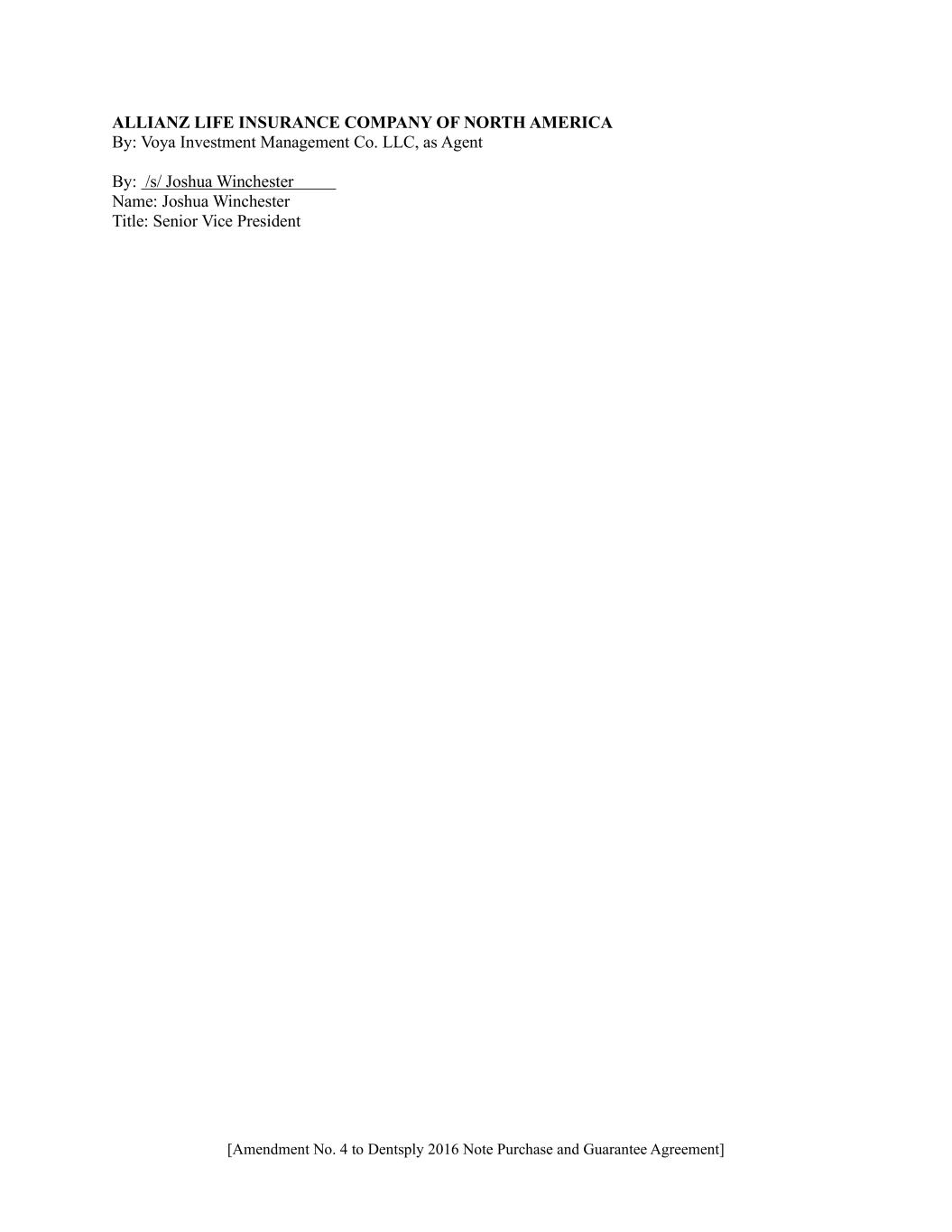 [Amendment No. 4 to Dentsply 2016 Note Purchase and Guarantee Agreement] ALLIANZ LIFE INSURANCE COMPANY OF NORTH AMERICA By: Voya Investment Management Co. LLC, as Agent By: /s/ Joshua Winchester Name: Joshua Winchester Title: Senior Vice President