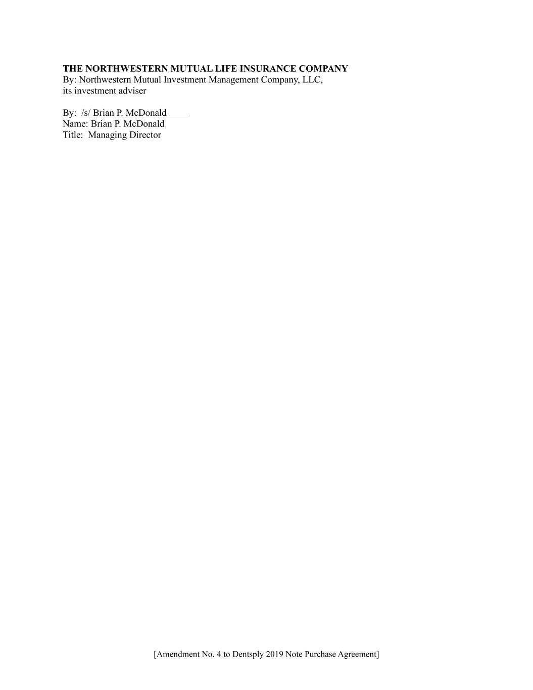 [Amendment No. 4 to Dentsply 2019 Note Purchase Agreement] THE NORTHWESTERN MUTUAL LIFE INSURANCE COMPANY By: Northwestern Mutual Investment Management Company, LLC, its investment adviser By: /s/ Brian P. McDonald Name: Brian P. McDonald Title: Managing Director