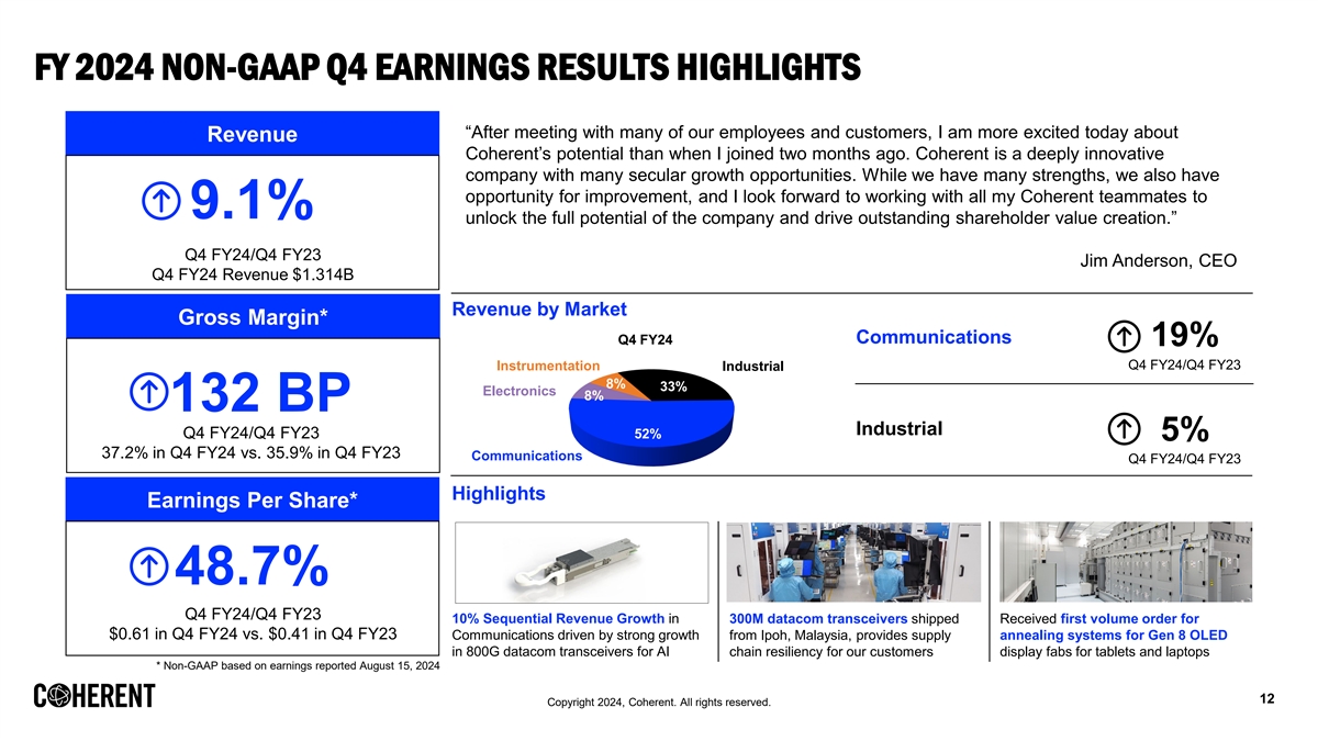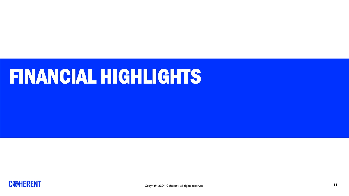 FINANCIAL HIGHLIGHTS 11 Copyright 2024, Coherent. All rights reserved.