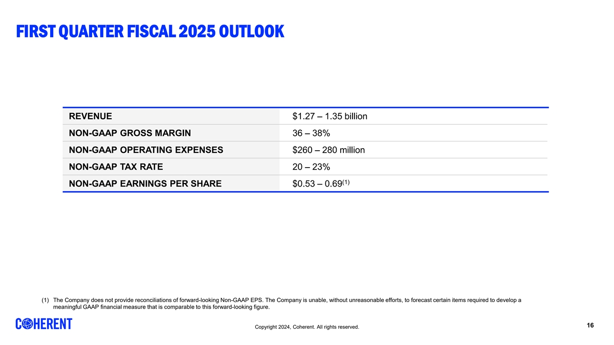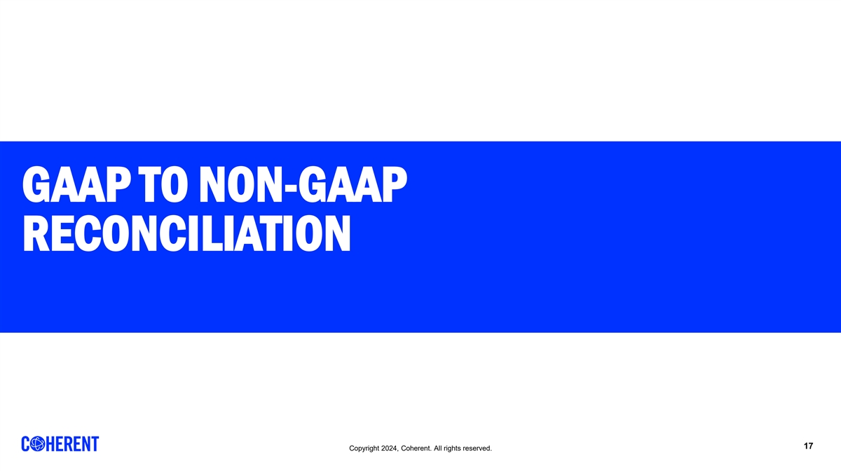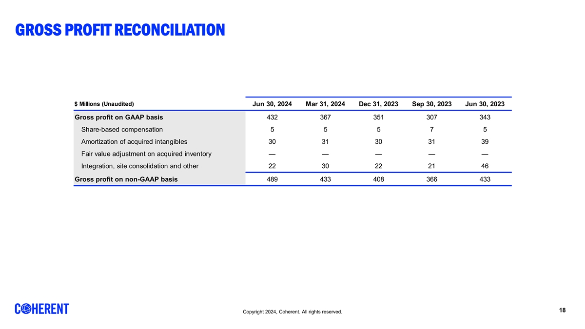 GAAP TO NON-GAAP RECONCILIATION 17 Copyright 2024, Coherent. All rights reserved.