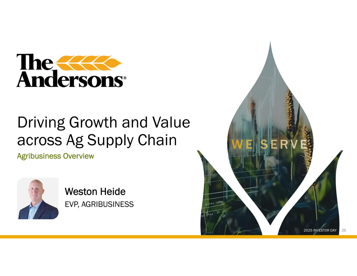 2025 INVESTOR DAY Driving Growth and Value across Ag Supply Chain Agribusiness Overview Weston Heide EVP, AGRIBUSINESS 25