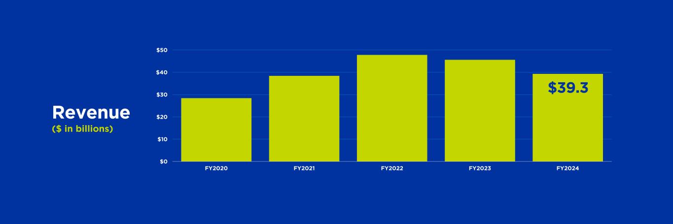 $0 $10 $20 $30 $40 $50 FY2020 FY2021 FY2022 FY2023 FY2024 Revenue $39.3 ($ in billions)