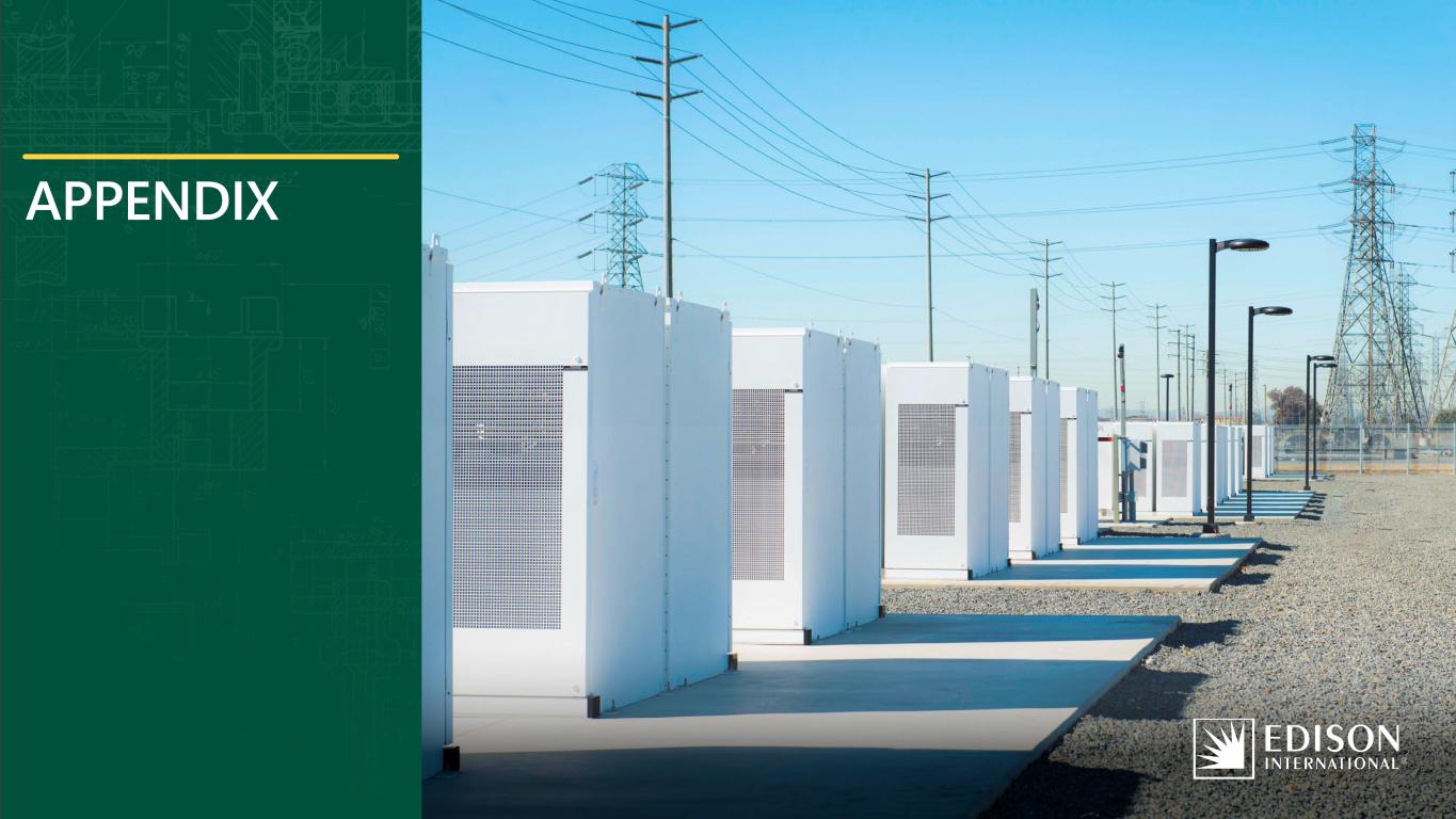 50Edison International | February 2025 Business Update AppendixIntroduction Financial InformationClean Energy Transition LeadershipWildfire Mitigation Use of Non-GAAP Financial Measures EIX Investor Relations Contact Sam Ramraj, Vice President Derek Matsushima, Principal Manager (626) 302-2540 (626) 302-3625 Sam.Ramraj@edisonintl.com Derek.Matsushima@edisonintl.com Edison International's earnings are prepared in accordance with generally accepted accounting principles used in the United States. Management uses core earnings (loss) internally for financial planning and for analysis of performance. Core earnings (loss) are also used when communicating with investors and analysts regarding Edison International's earnings results to facilitate comparisons of the company's performance from period to period. Core earnings (loss) are a non-GAAP financial measure and may not be comparable to those of other companies. Core earnings (loss) are defined as earnings attributable to Edison International shareholders less non-core items. Non-core items include income or loss from discontinued operations and income or loss from significant discrete items that management does not consider representative of ongoing earnings, such as write downs, asset impairments, wildfire-related claims, and other income and expense related to changes in law, outcomes in tax, regulatory or legal proceedings, and exit activities, including sale of certain assets and other activities that are no longer continuing. A reconciliation of Non-GAAP information to GAAP information is included either on the slide where the information appears or on another slide referenced in this presentation.